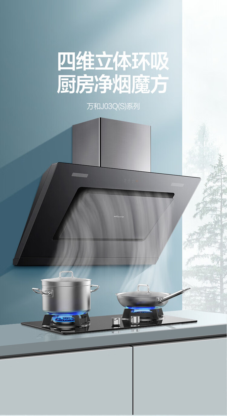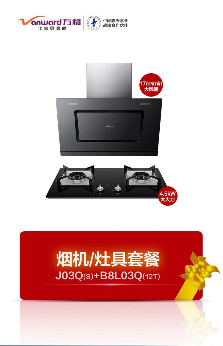 IBF艾博菲万和烟机灶具二件套J03Q(S)B8L03立体环吸17m吸力_4.5kw一级能效烟灶_侧吸J03QSB8L03Q烟灶二件套_天然气【K】