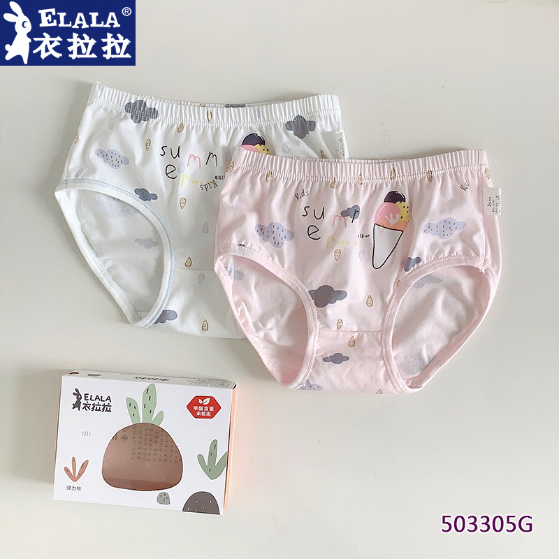 衣拉拉女童内裤儿童三角内裤中小童弹力纯棉泡泡立体宝宝裤头2条