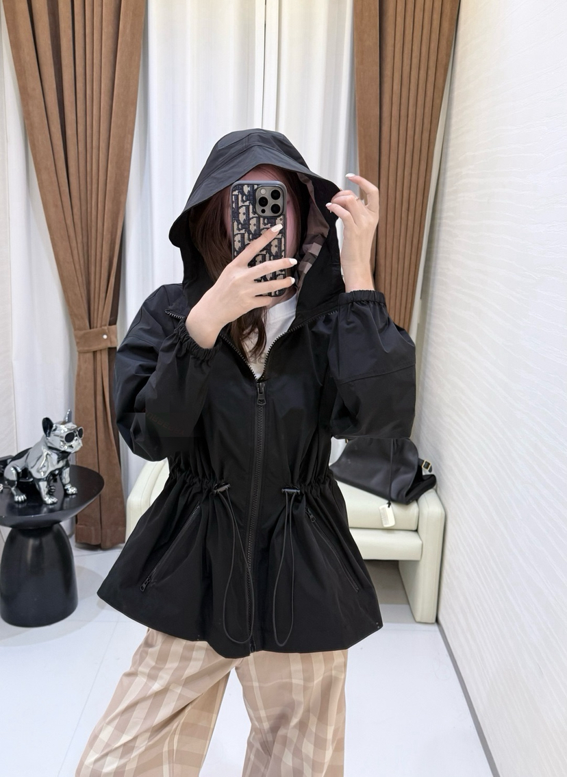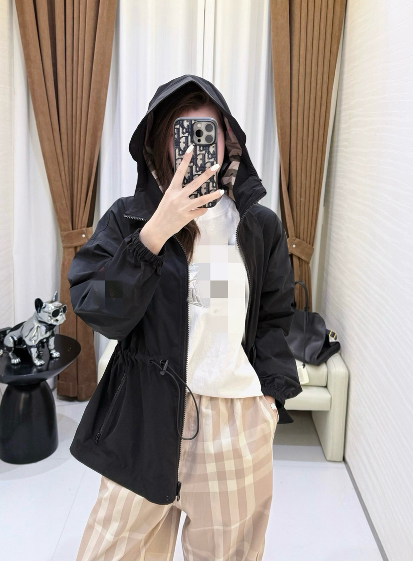 316-9 B家格纹连帽收腰外套
