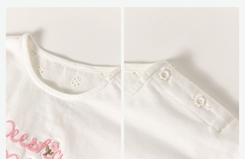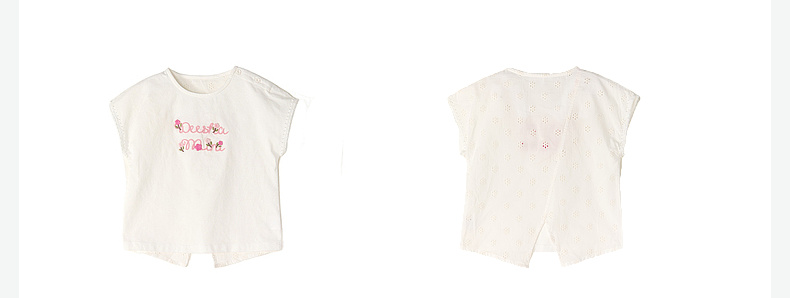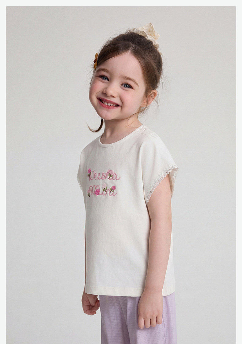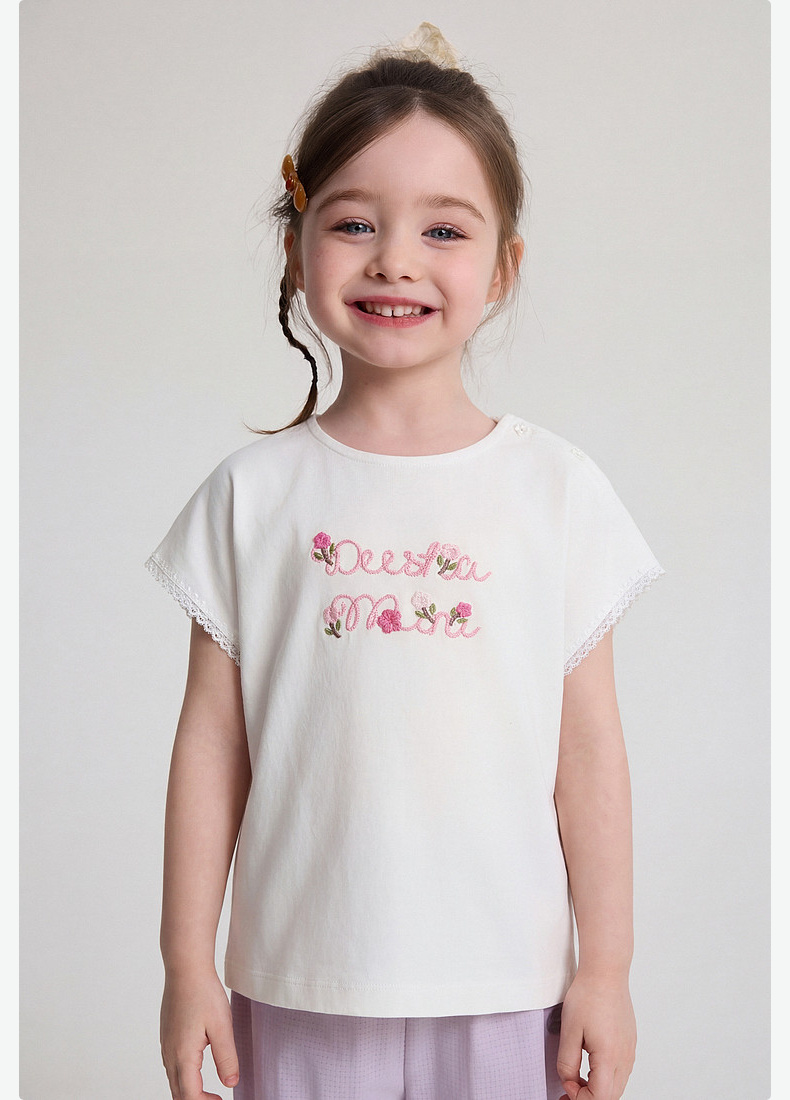 笛莎/Deesha 松饼熊2026年夏季新款童装女童甜美可爱趣味绣花翻领短袖T恤