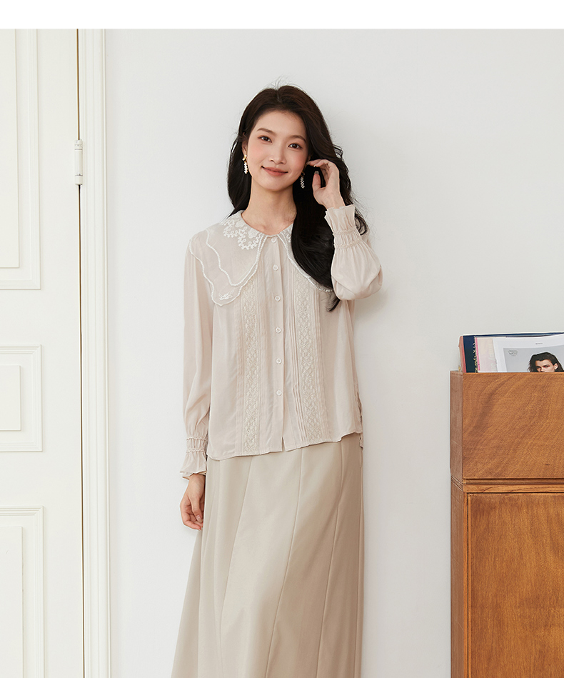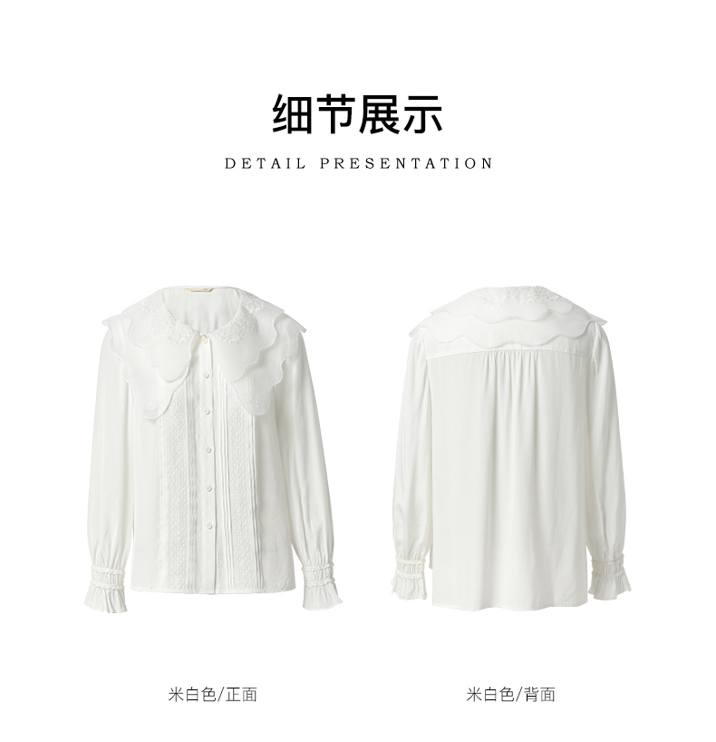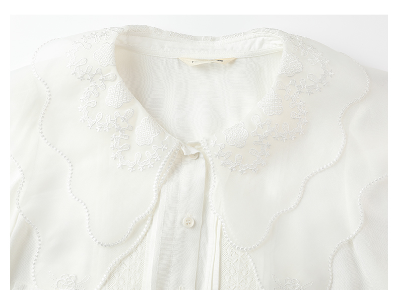 Famecoco原创文艺范衬衫花边蝴蝶领开身刺绣春秋款FAB6BH007