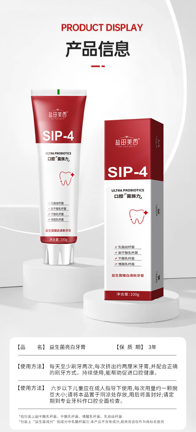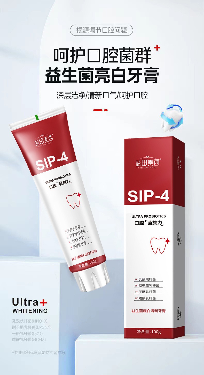 【深层洁净❗️清新口气】sp-4益生菌亮白牙膏去牙渍烟渍氨基酸口气清新口腔牙膏爆品。jb