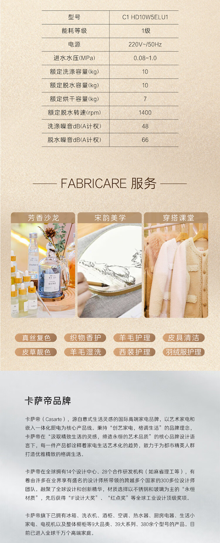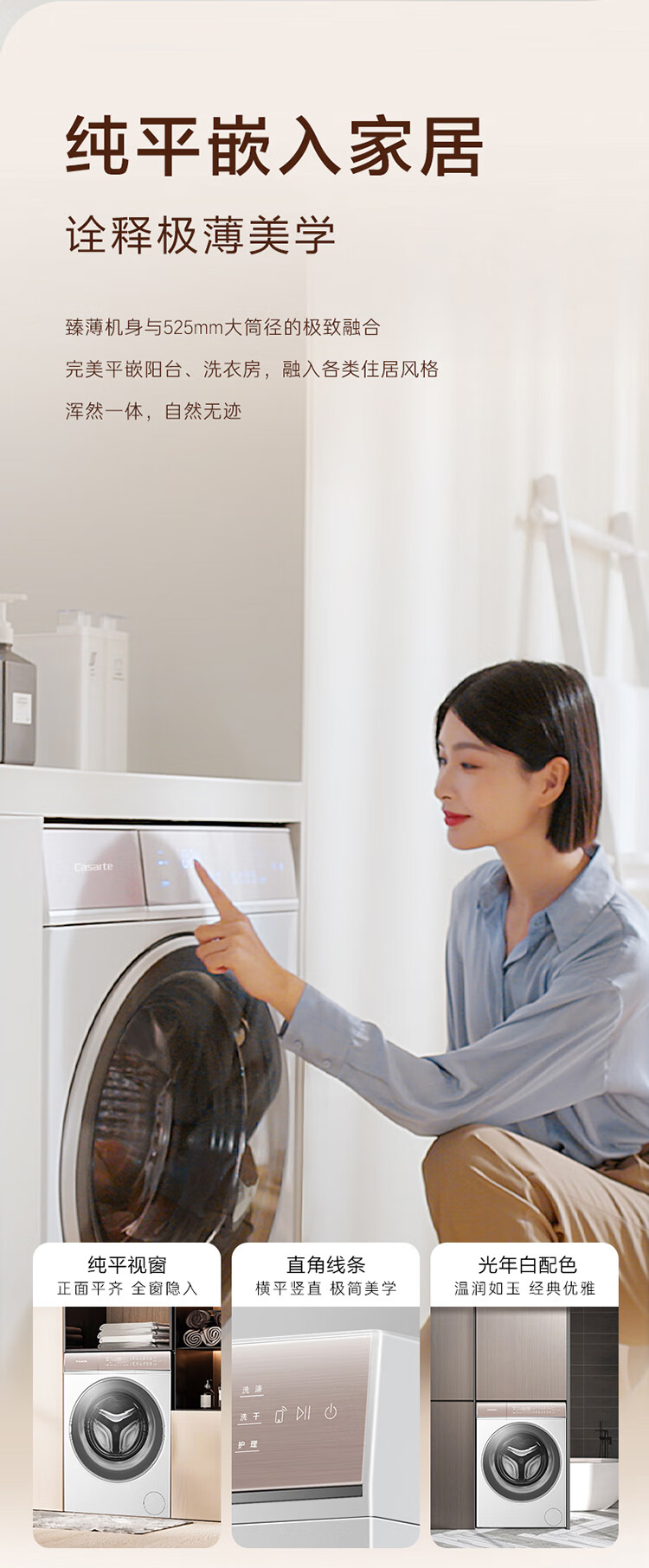 以旧换新-卡萨帝揽光W5滚筒洗衣机全自动 10公斤洗烘一体机 精华洗快净省 超薄纯平嵌入 空气洗护理 HD10W5ELU1
