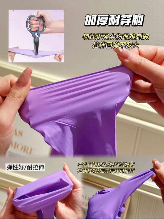 食品级认证平时家务全靠它!大扫除常备‼ 与传统PVC手套相比丁腈手套优势明显亲肤防敏🖐 丁腈是一种合成橡胶对皮肤更友好丁腈手套