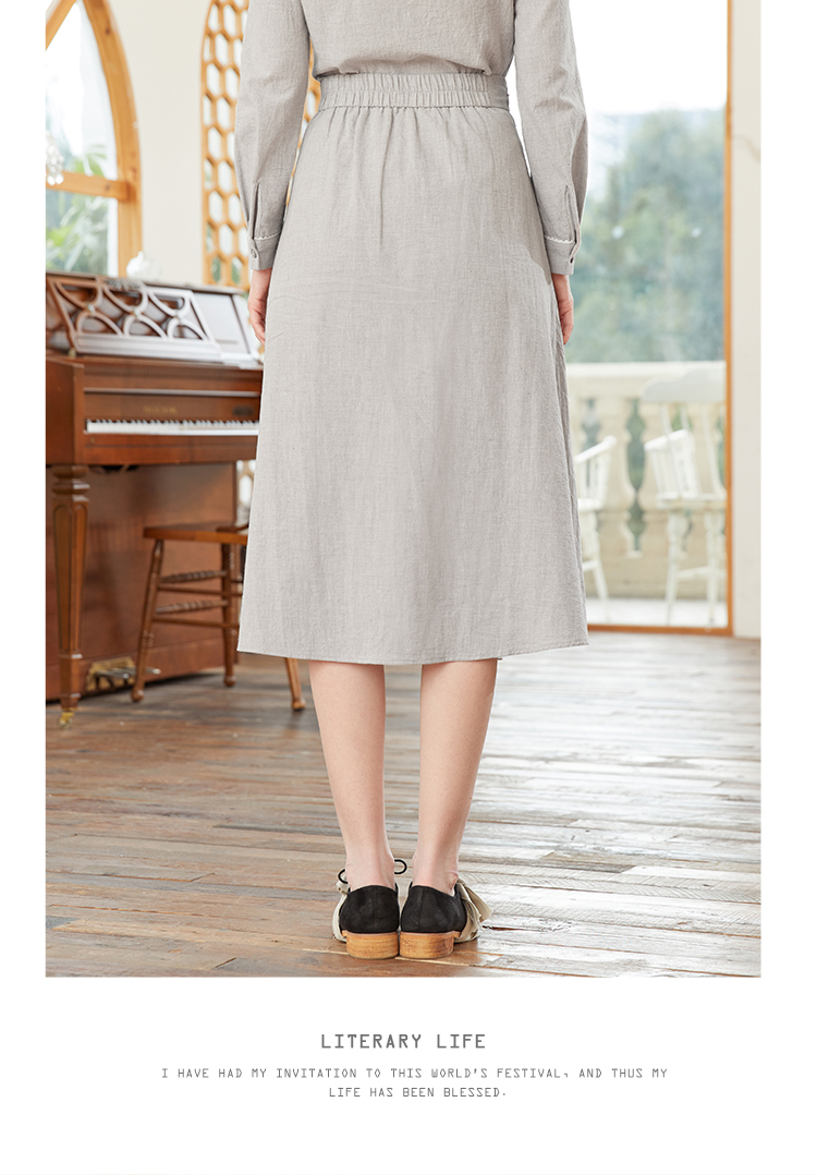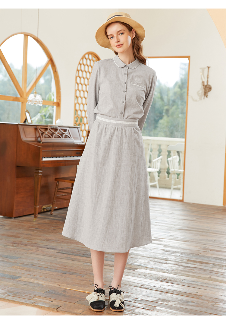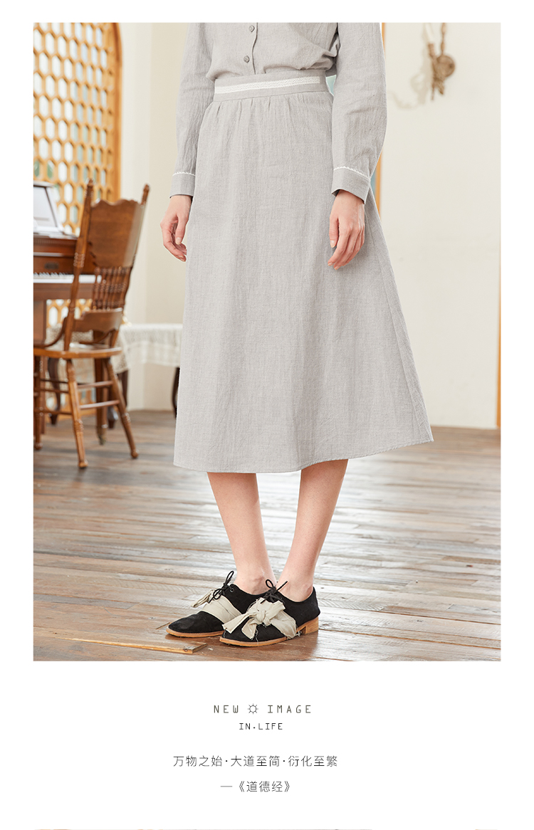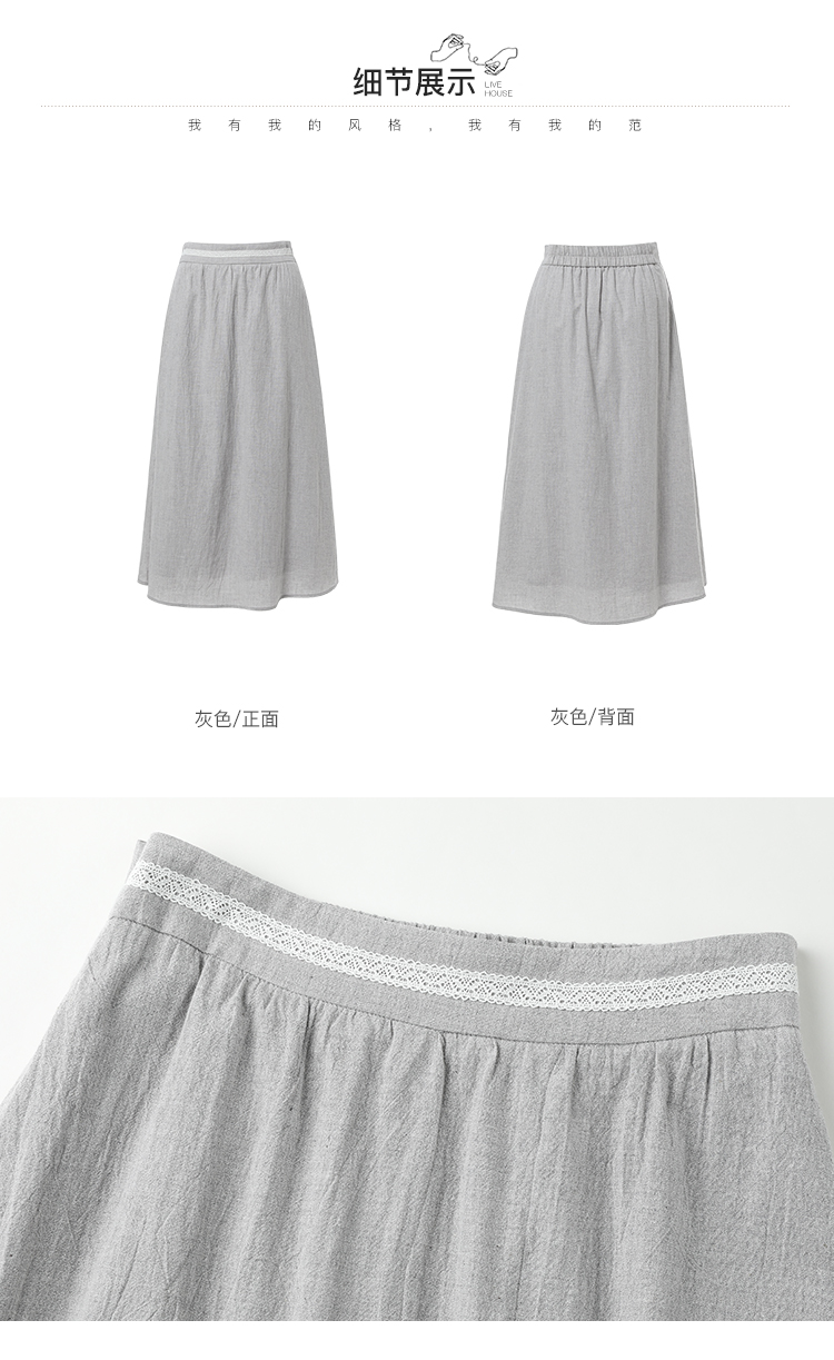 Famecoco范可儿拼接花边灰色半身裙春季后松紧高腰半裙FAB1HA017