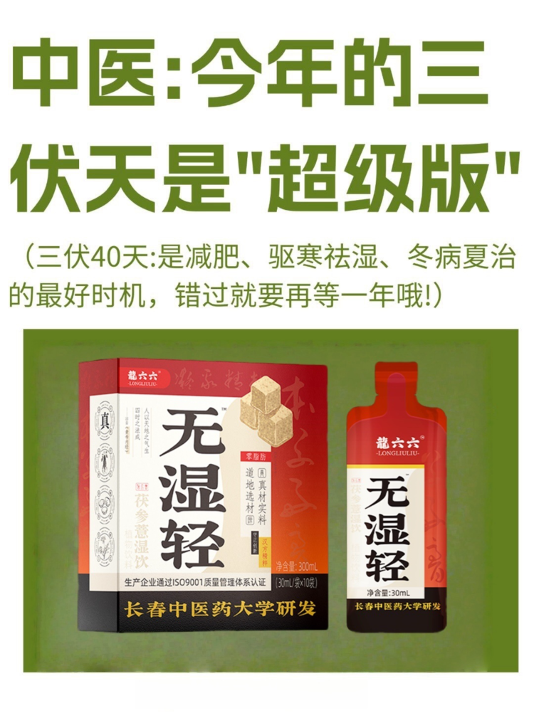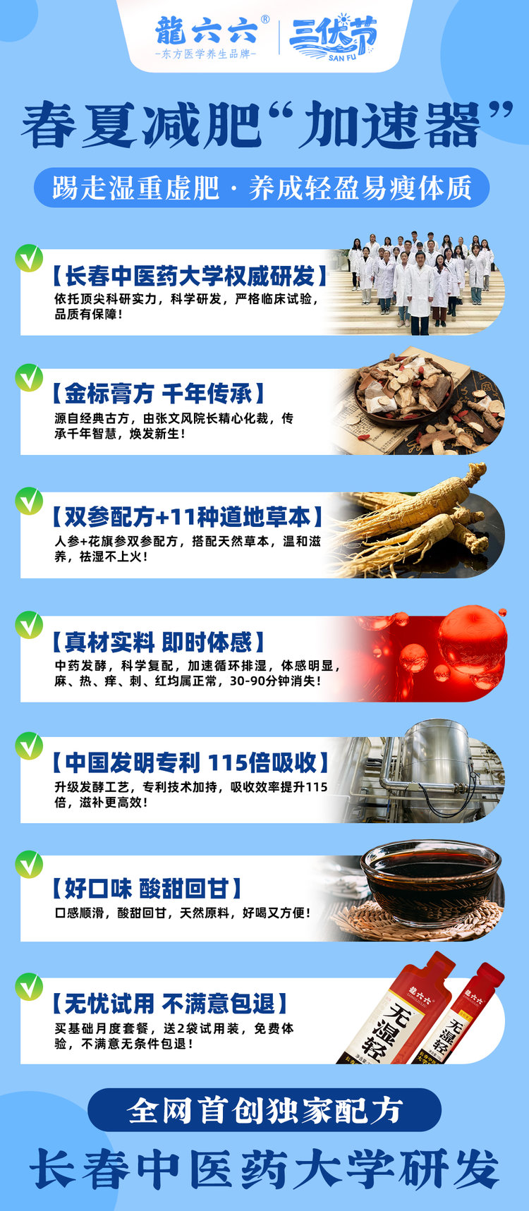 冬寎夏治❗长春中医药大学×龍六六强强联合!【龍六六无湿轻 · 三伏祛湿黄金期】💦10分钟即时体感→打通身体微循环 ✅国家发明专利→115倍高速吸收 ✅独创双参配方,双效祛湿🚫告别湿重虚胖|