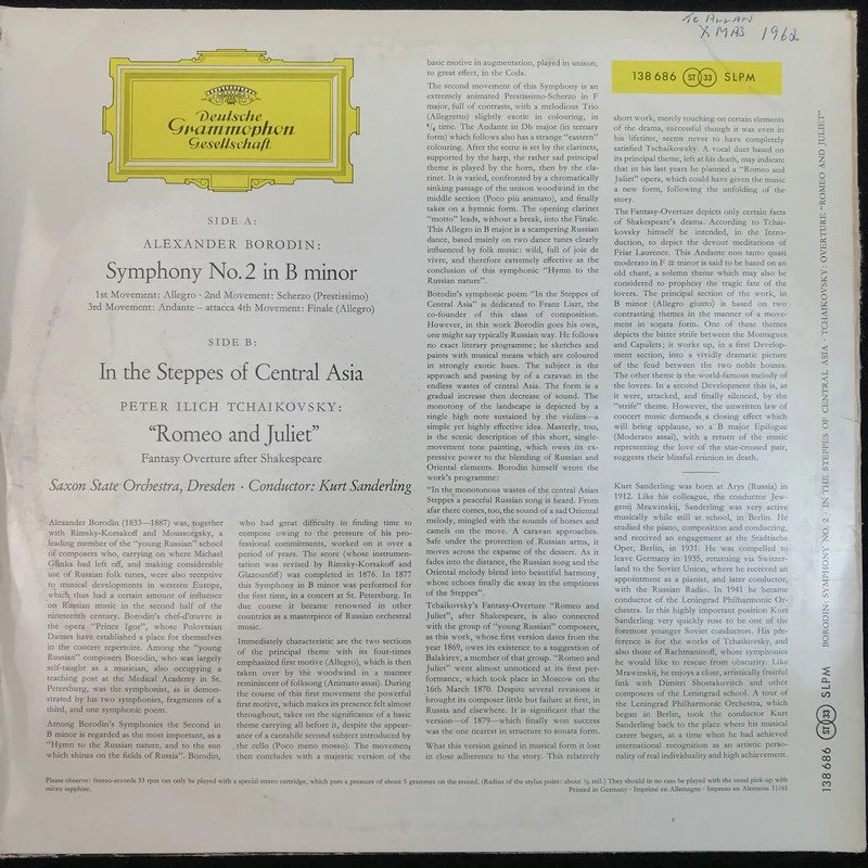LP黑胶唱片 鲍罗丁《B小调第二交响曲》《在中亚细亚草原上》 柴科夫斯基《<罗密欧与朱丽叶>序曲》 德累斯顿撒克逊国家管弦乐团 库特·桑德林指挥