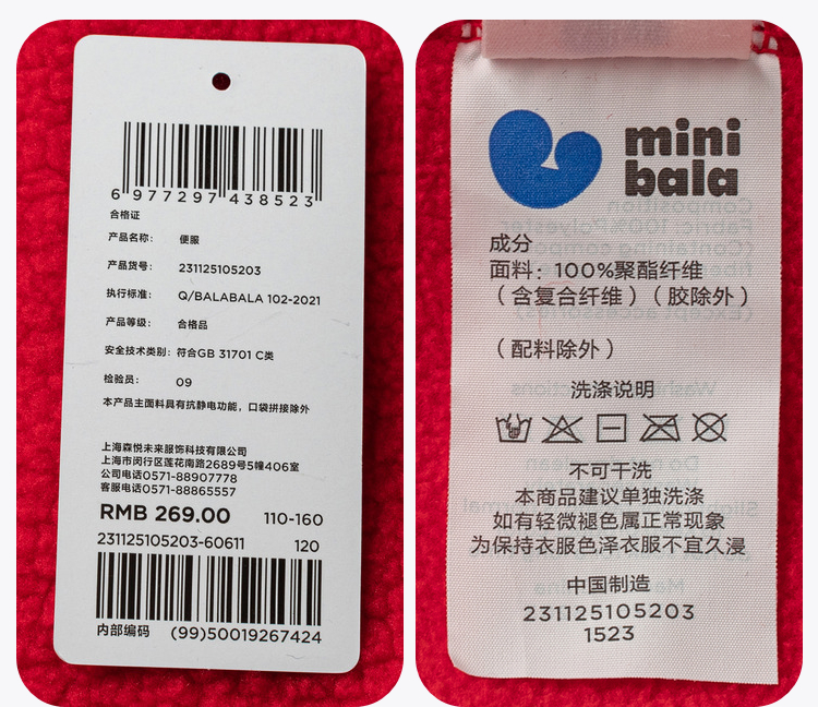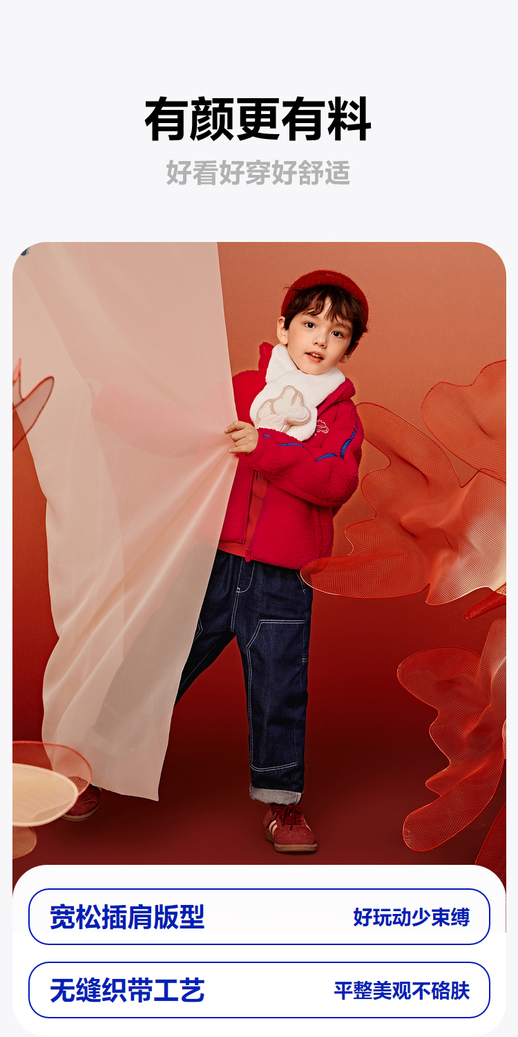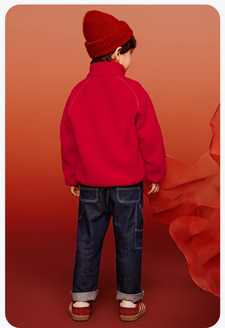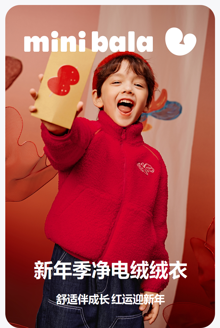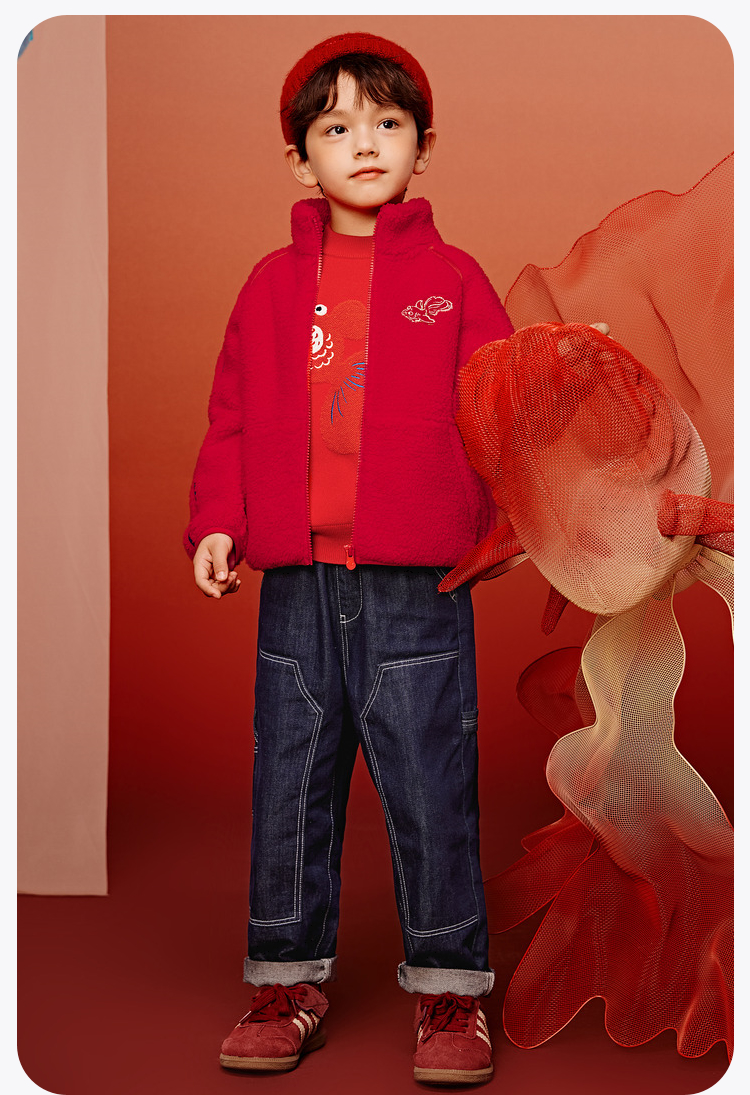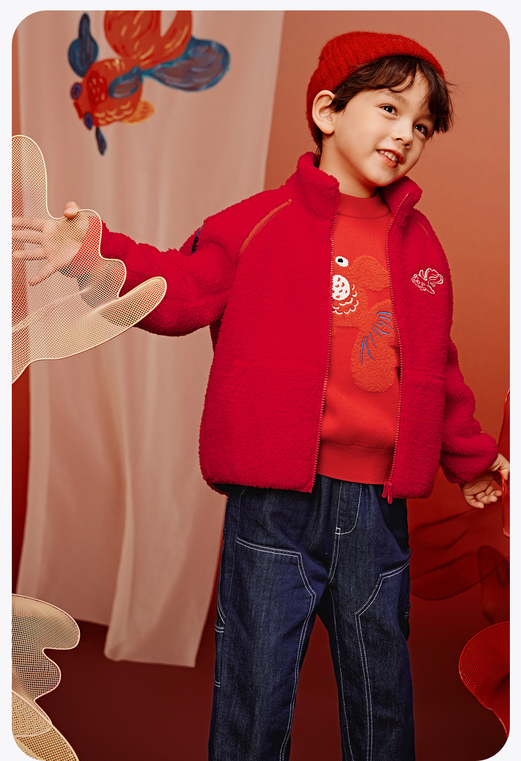【新年季】迷你巴拉男女童红色拜年服外套抗静电保暖毛绒夹克