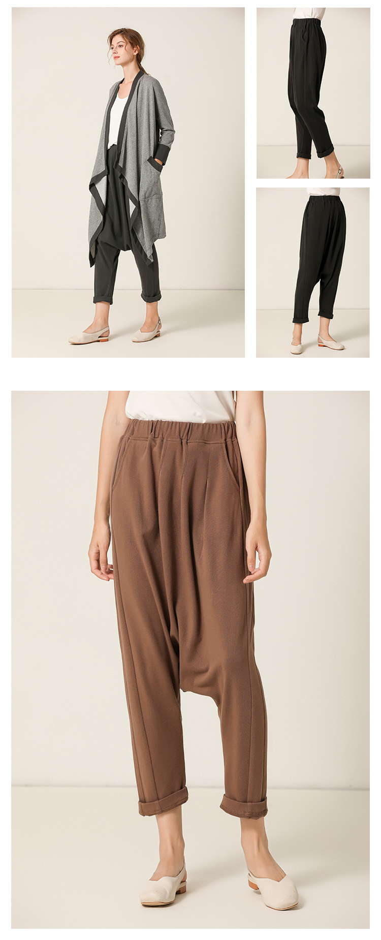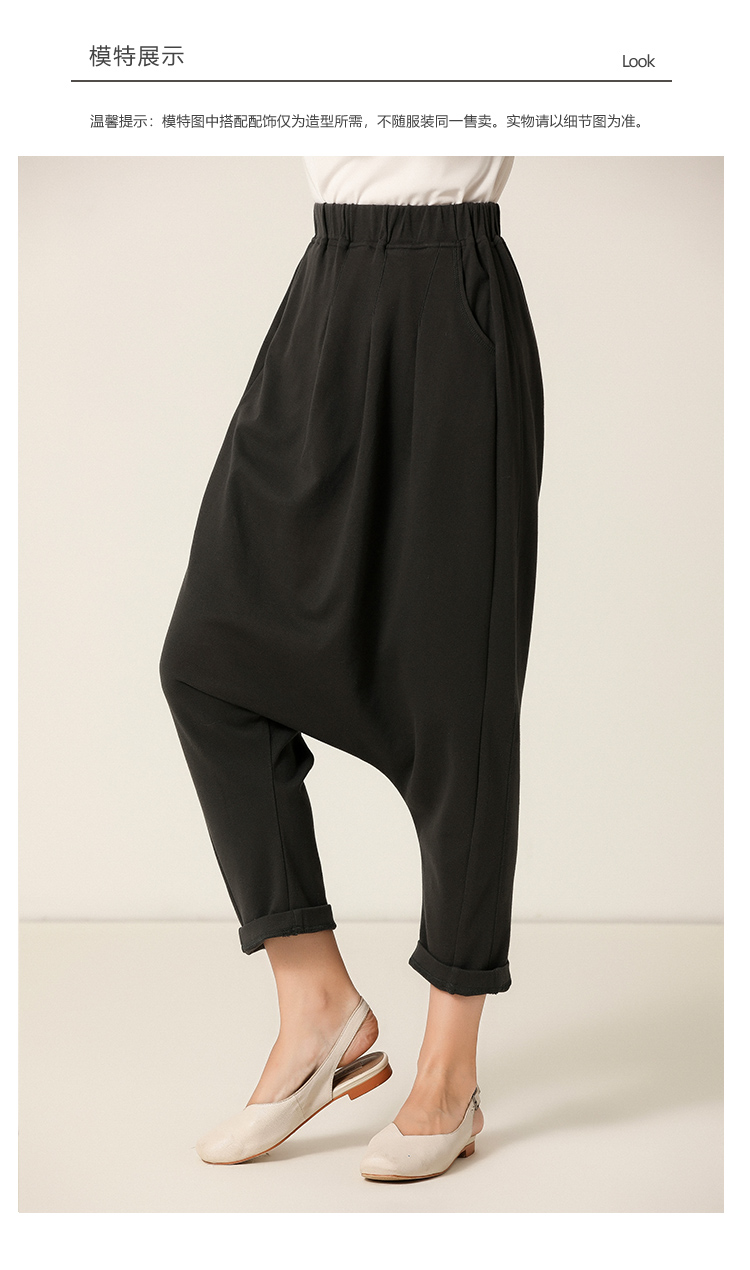 Famecoco范可儿裤子女秋季夏季自然腰宽松休闲裤F201GA021