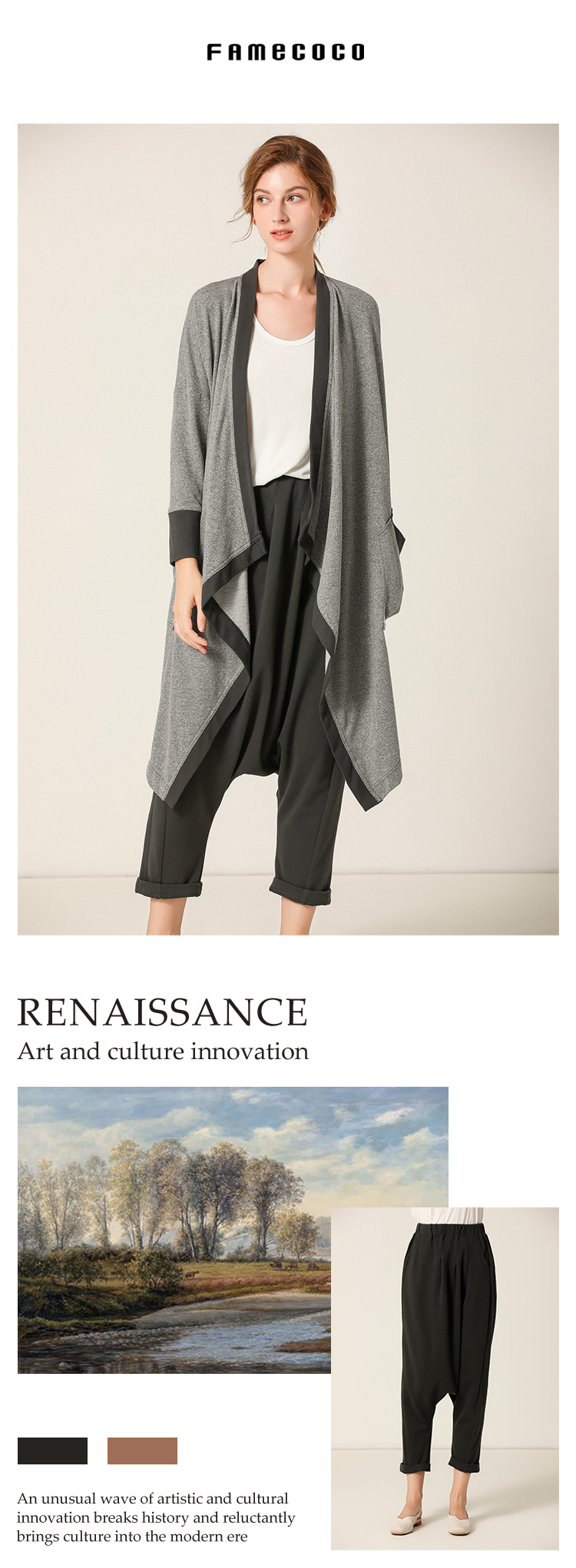 - Famecoco作为中国本土设计师品牌之一的她,创建于美丽的时尚花都广州,自2013年创立以来,一直致力于打造优雅、知性、文艺的穿着理念。