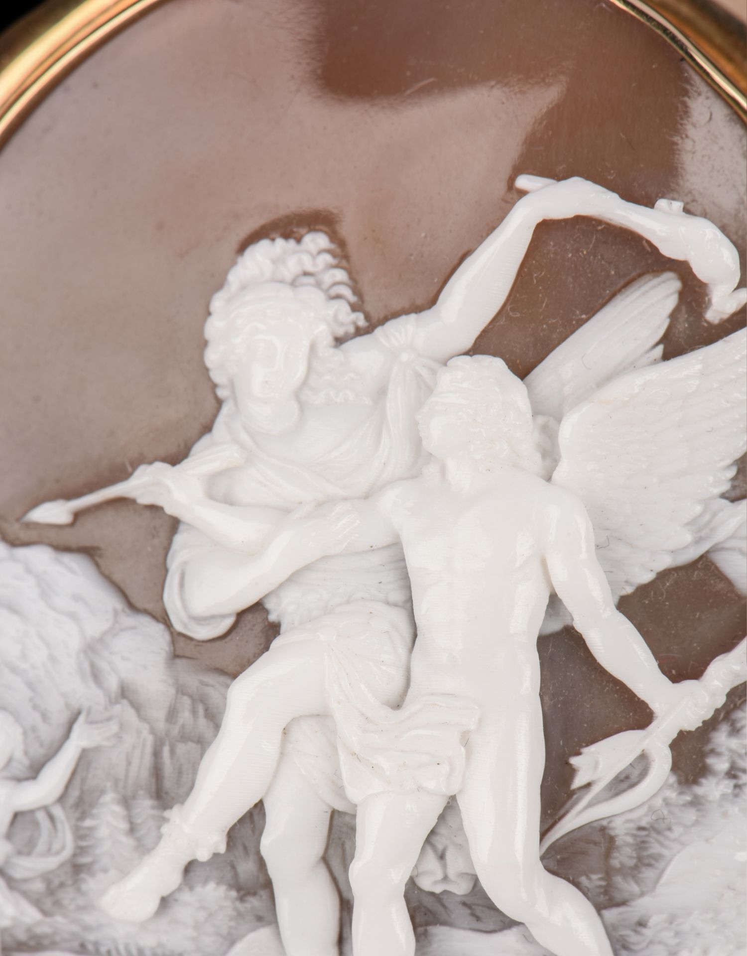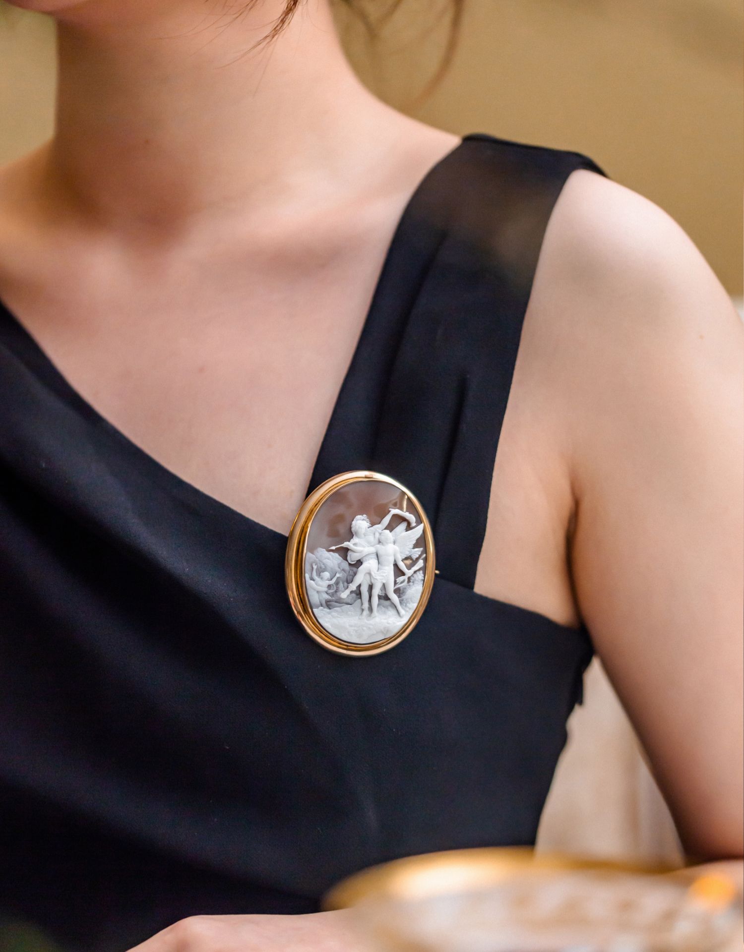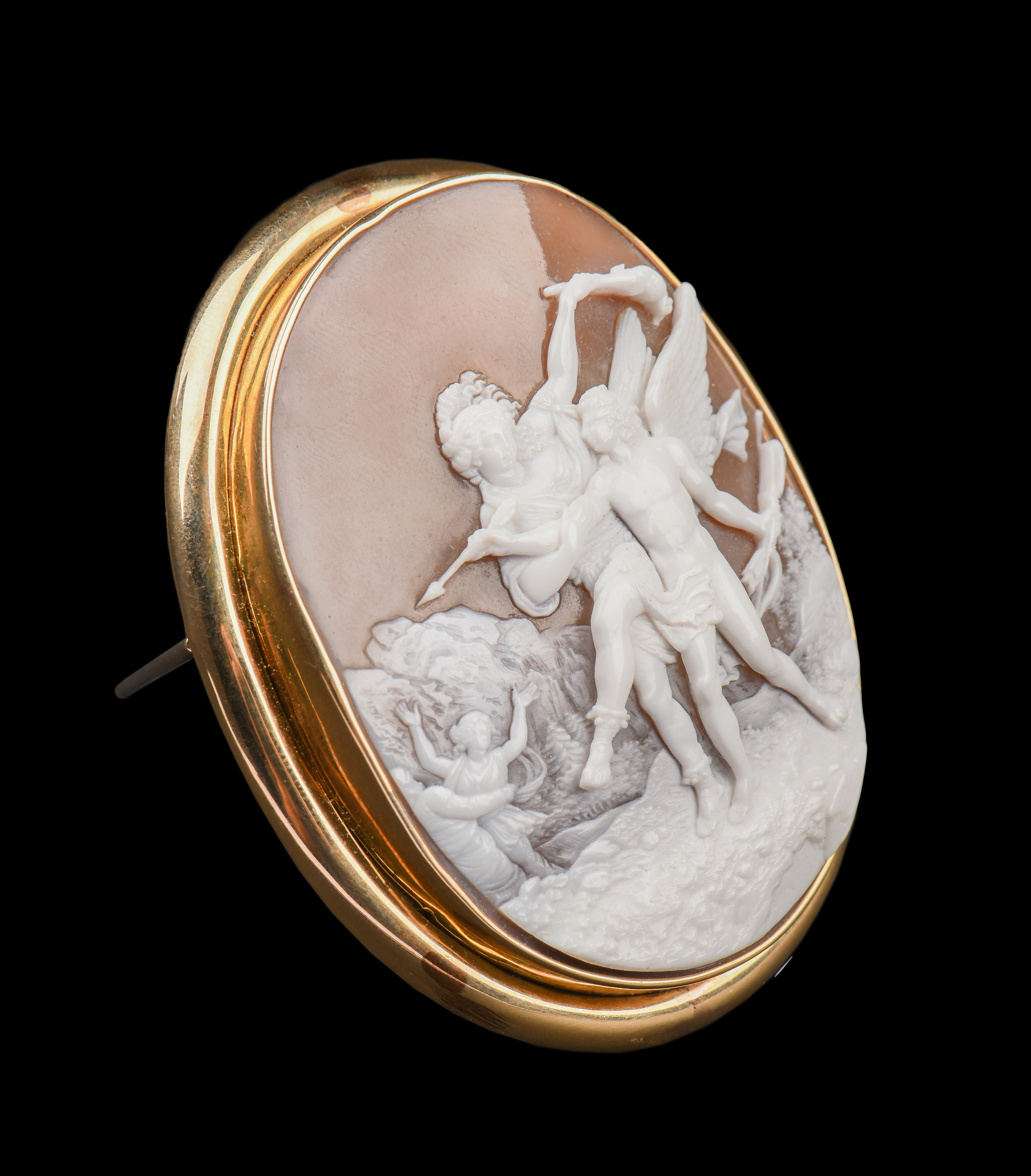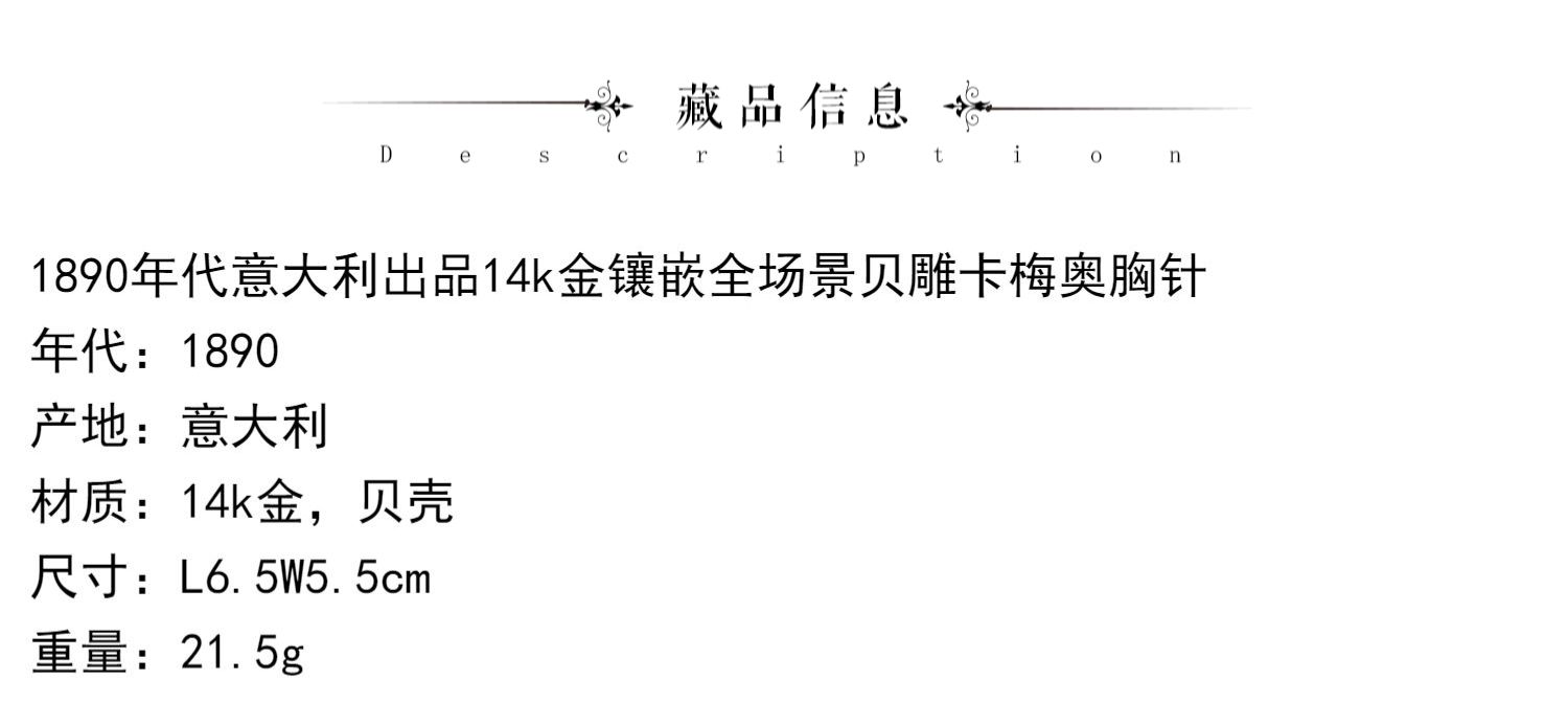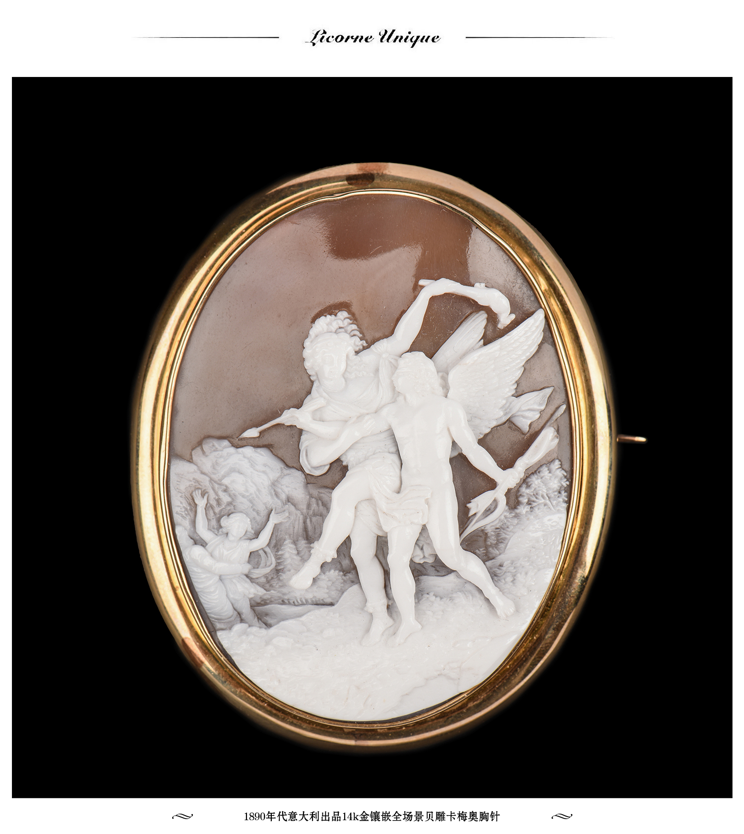 国内现货独角鹿西洋古董珠宝首饰14k金镶嵌全场景贝雕卡梅奥胸针