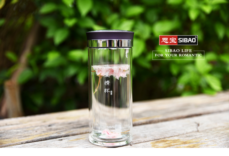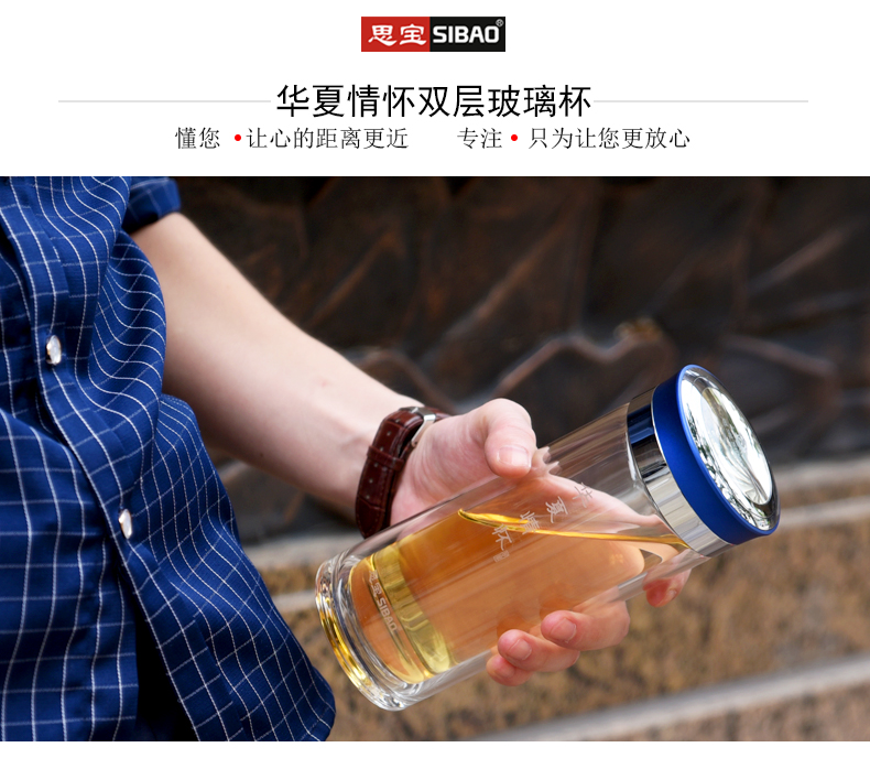 思宝旗舰店蓝天双层玻璃杯办公杯便携车载礼盒包装
