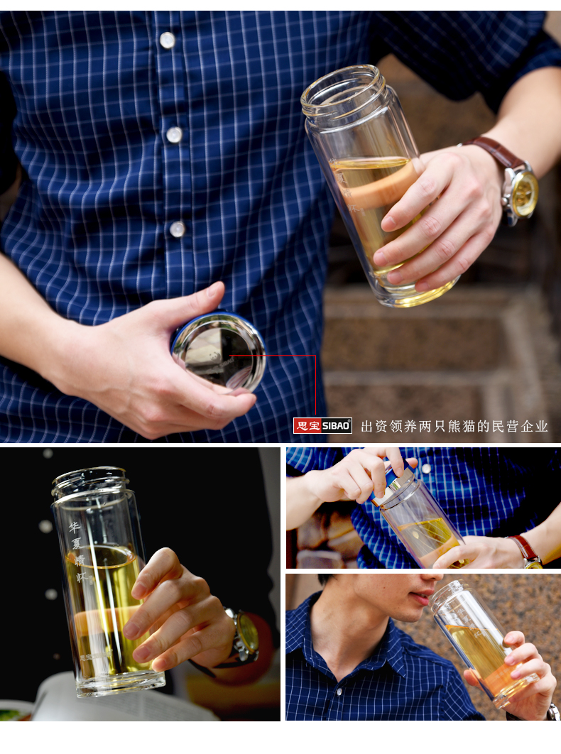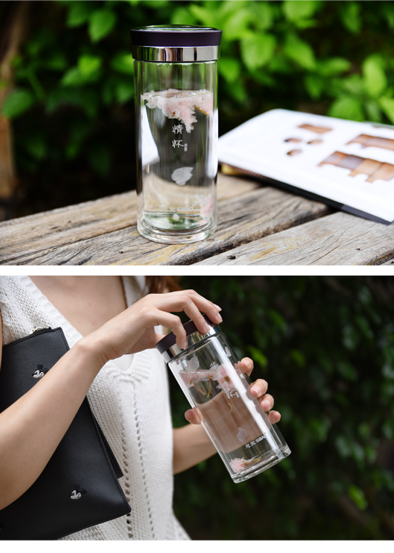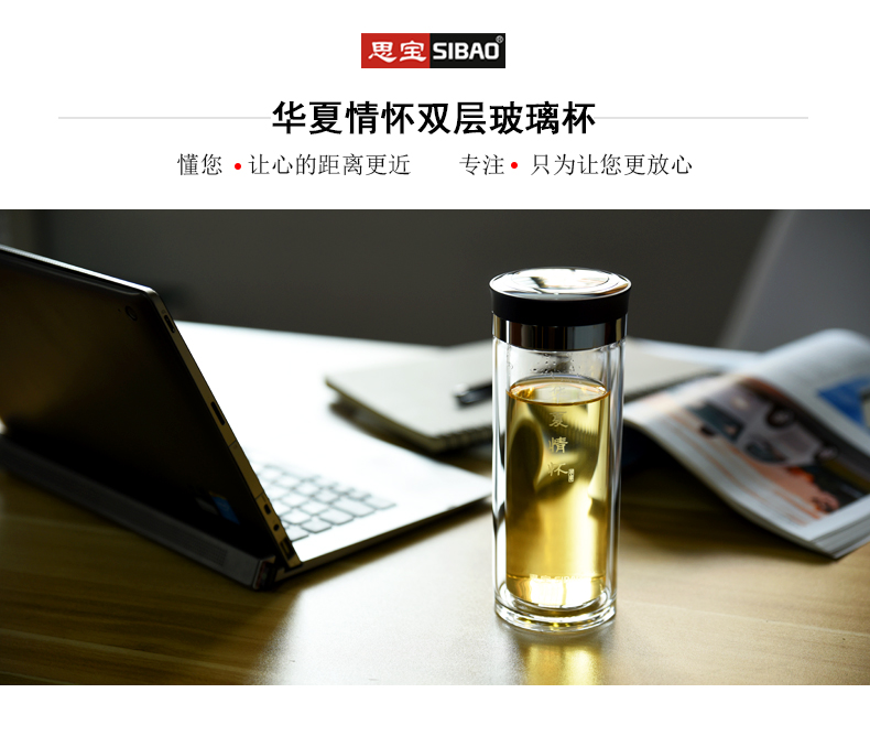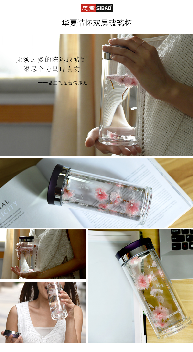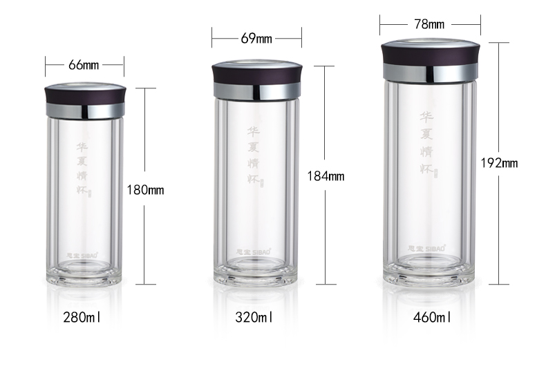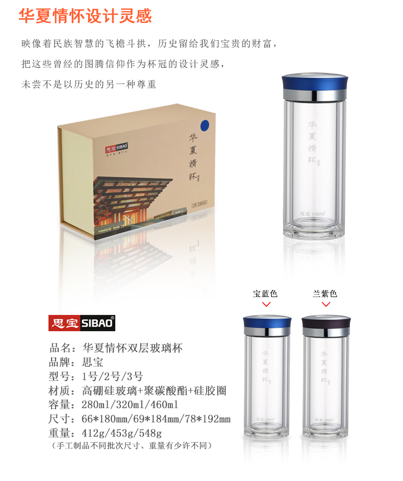 思宝旗舰店华夏情怀1-2-3号双层玻璃杯中国风便携时尚随手茶水杯