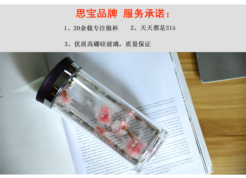 思宝旗舰店冰山精灵双层玻璃杯办公杯便携车载礼盒包装