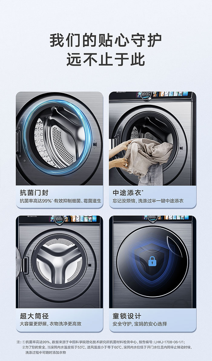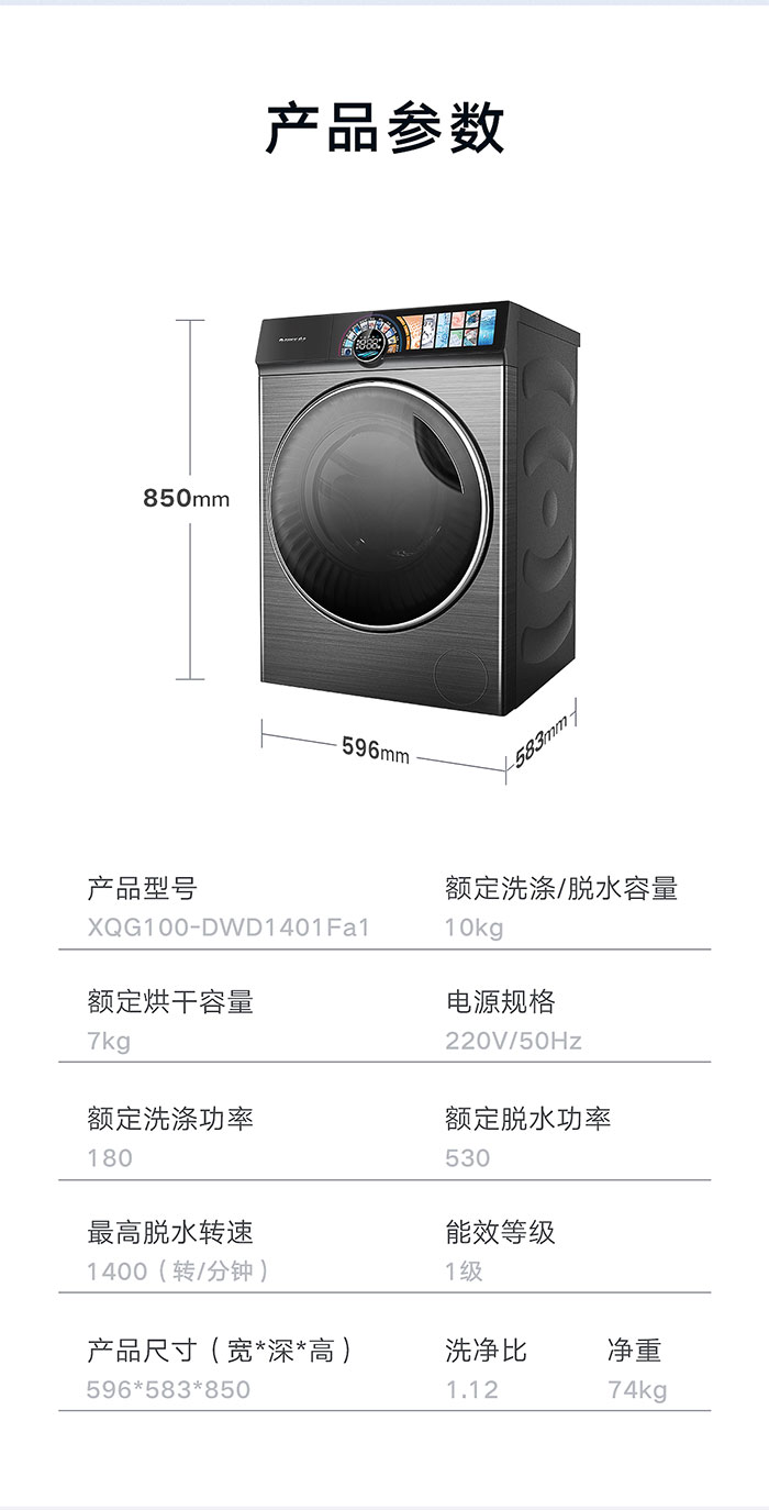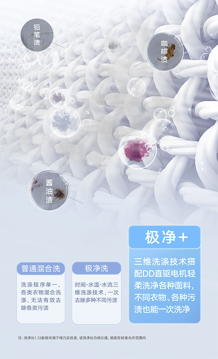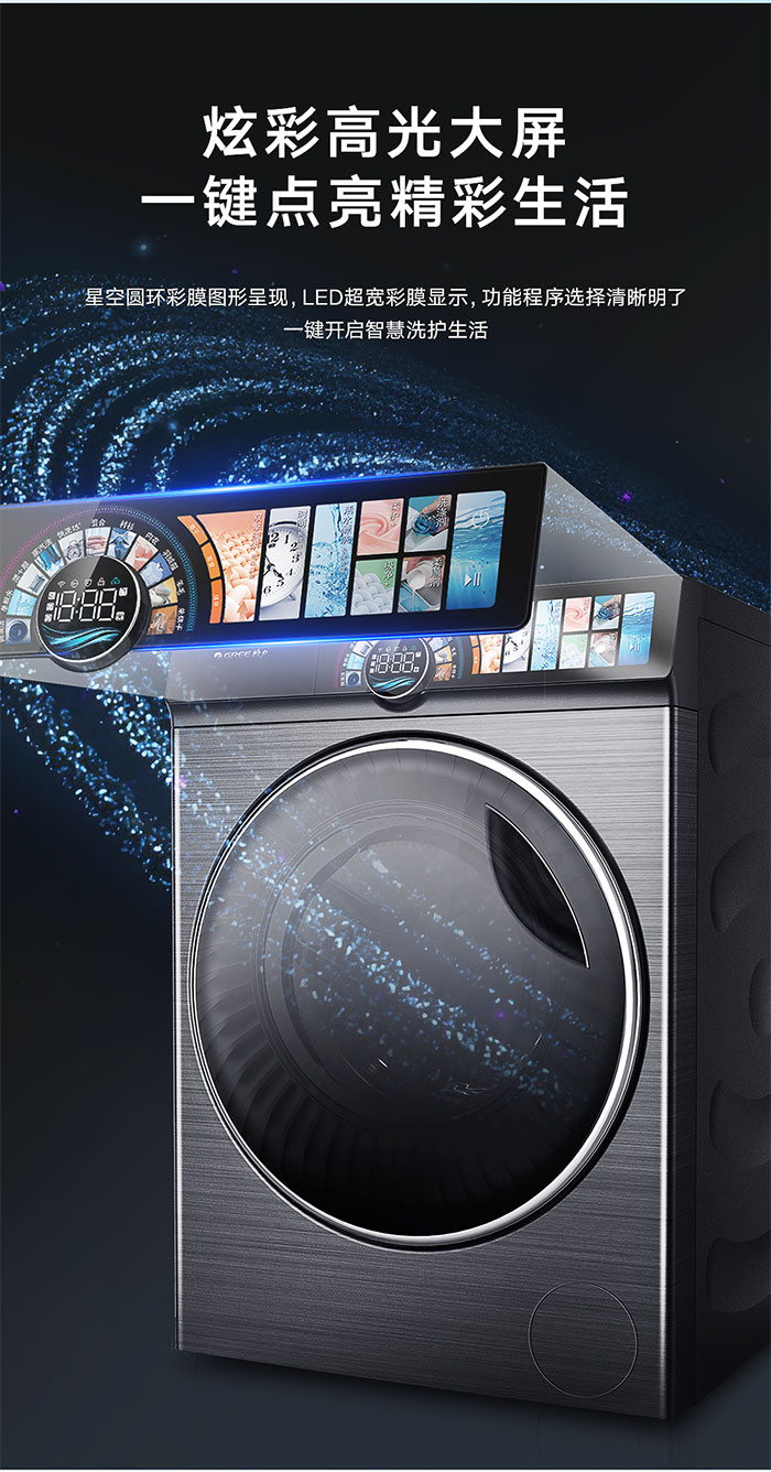 格力·臻柔滚筒洗衣机 洗烘一体 10kg XQG100-DWD1401Fa1(珍珠黑)
