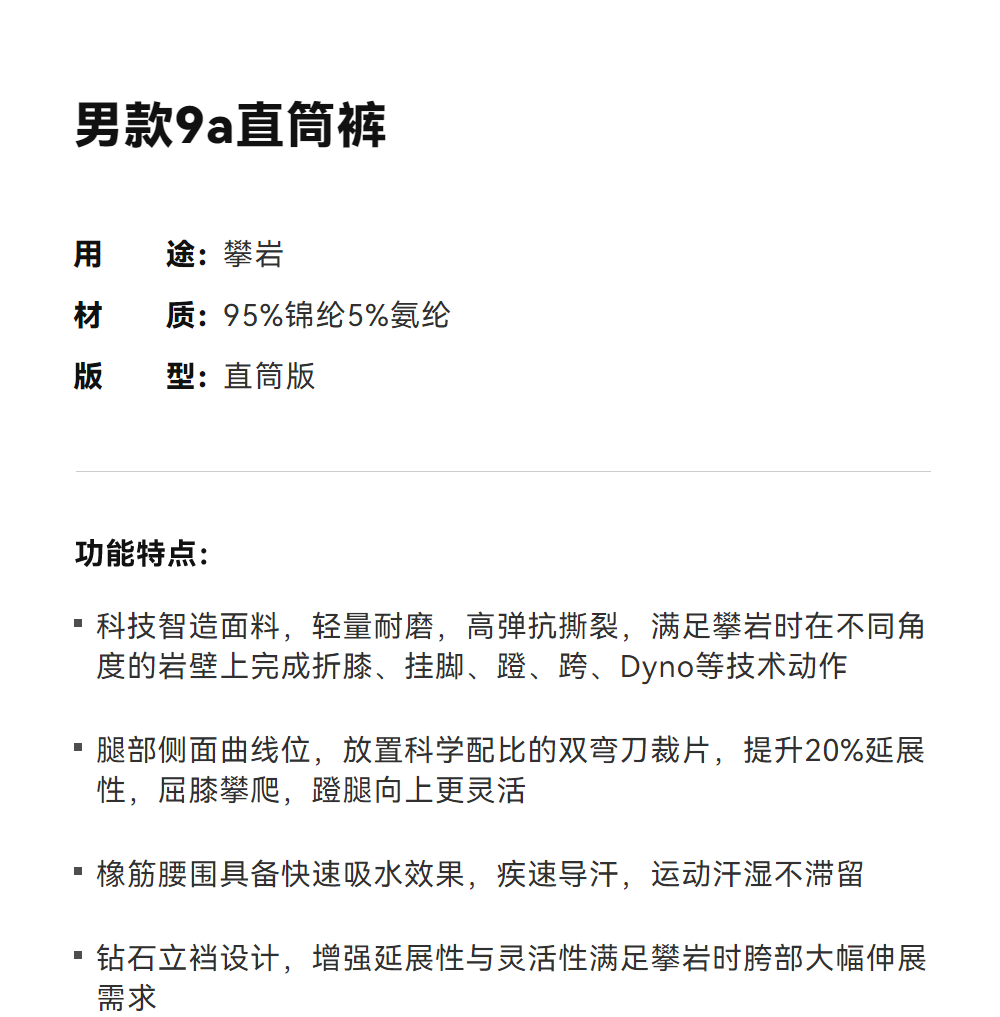 KAILAS凯乐石 男款9a直筒裤 KG2515308