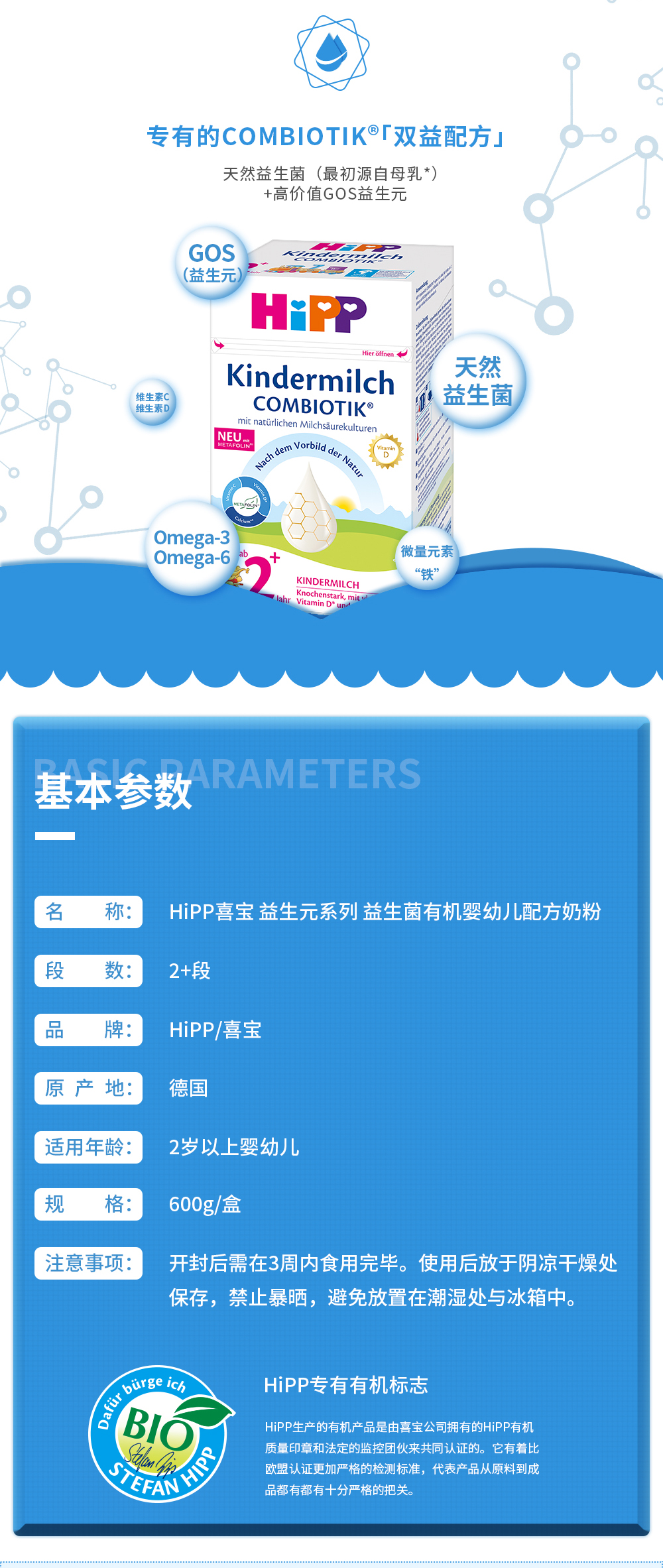 3罐【保税】德国喜宝奶粉益生菌2+段600g