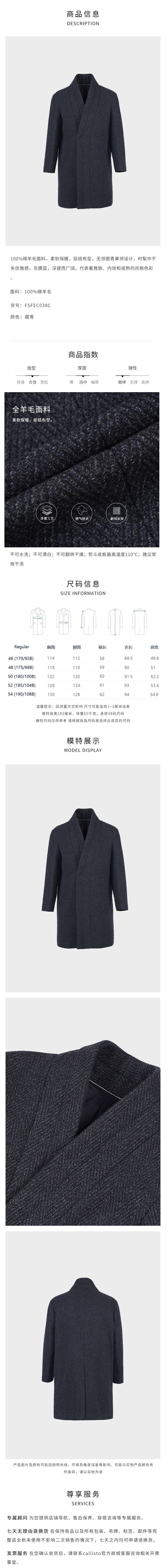 callisto藏青全绵羊毛无领面青团果领大衣 FSFEC038Y