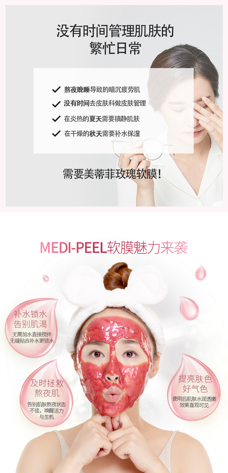 韩国 MEDI-PEEL美蒂菲 深层补水玫瑰/ 蓝玫瑰营养 / 绿积雪草舒缓 软膜粉涂抹面膜 1100ml
