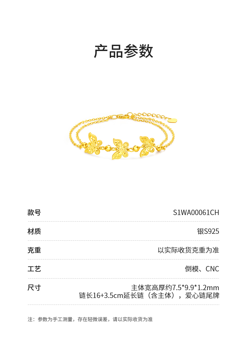 周大生流光闪蝶碎碎冰手链女纯银S925轻奢高级手饰生日礼物送女友