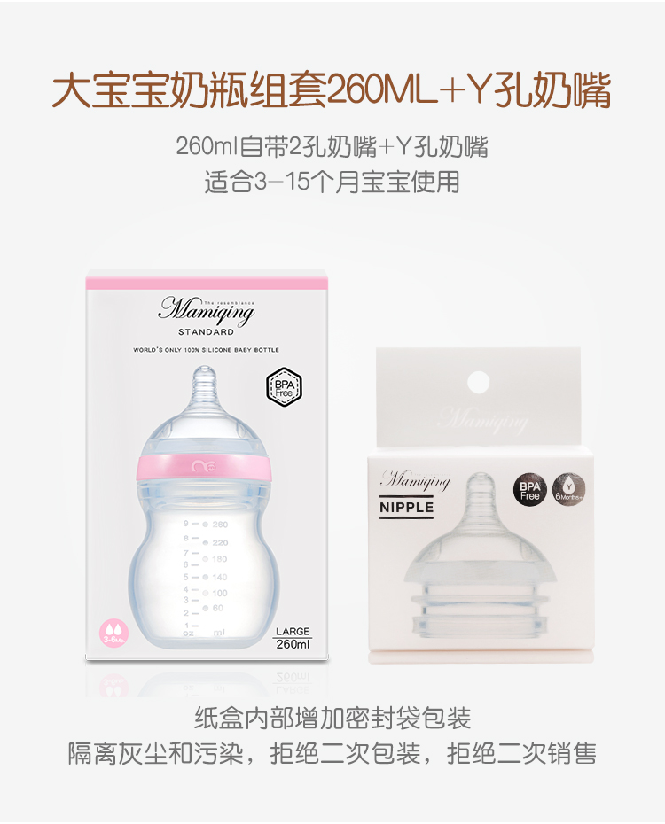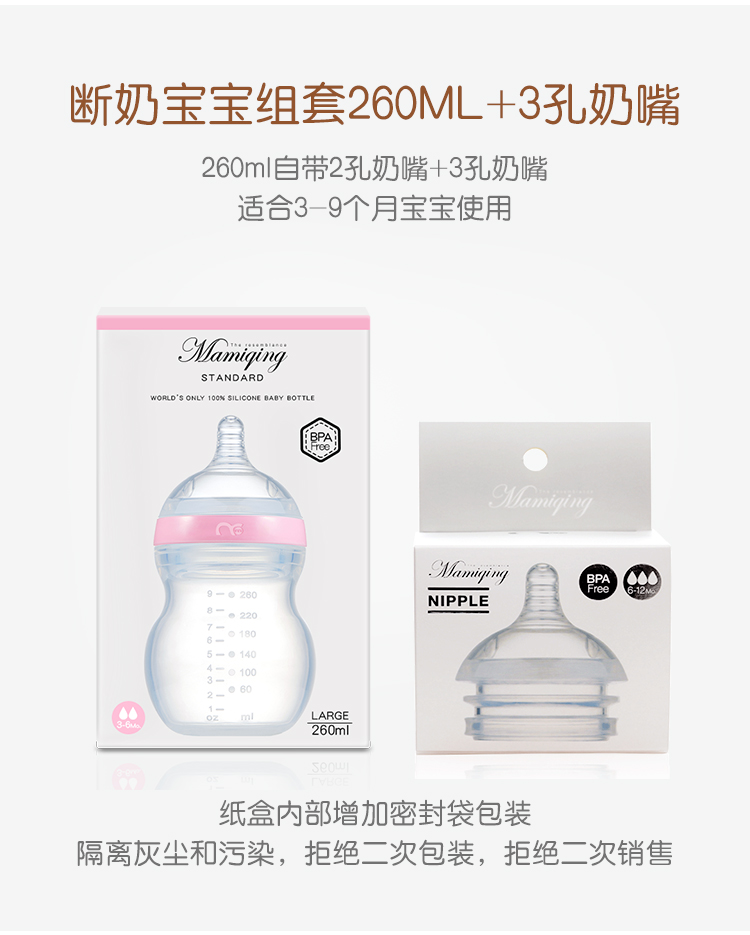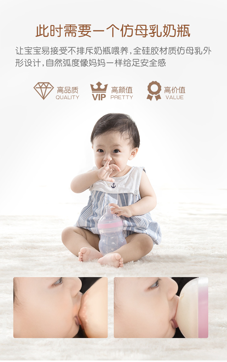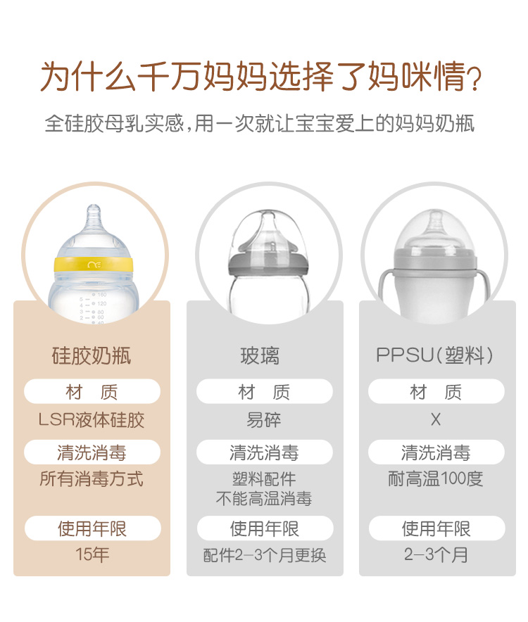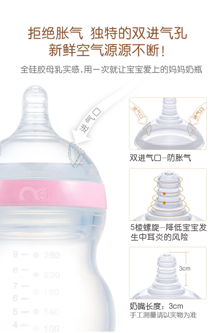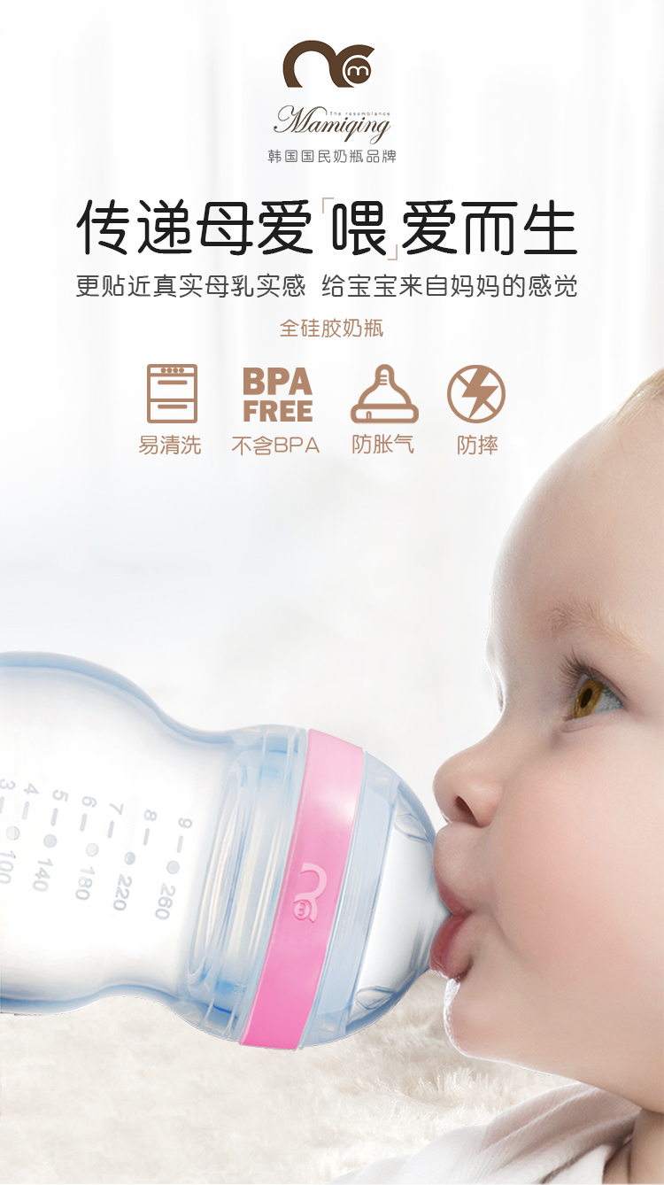 妈咪情全硅胶宽口奶瓶母乳实感防呛防胀气婴儿宝宝断奶