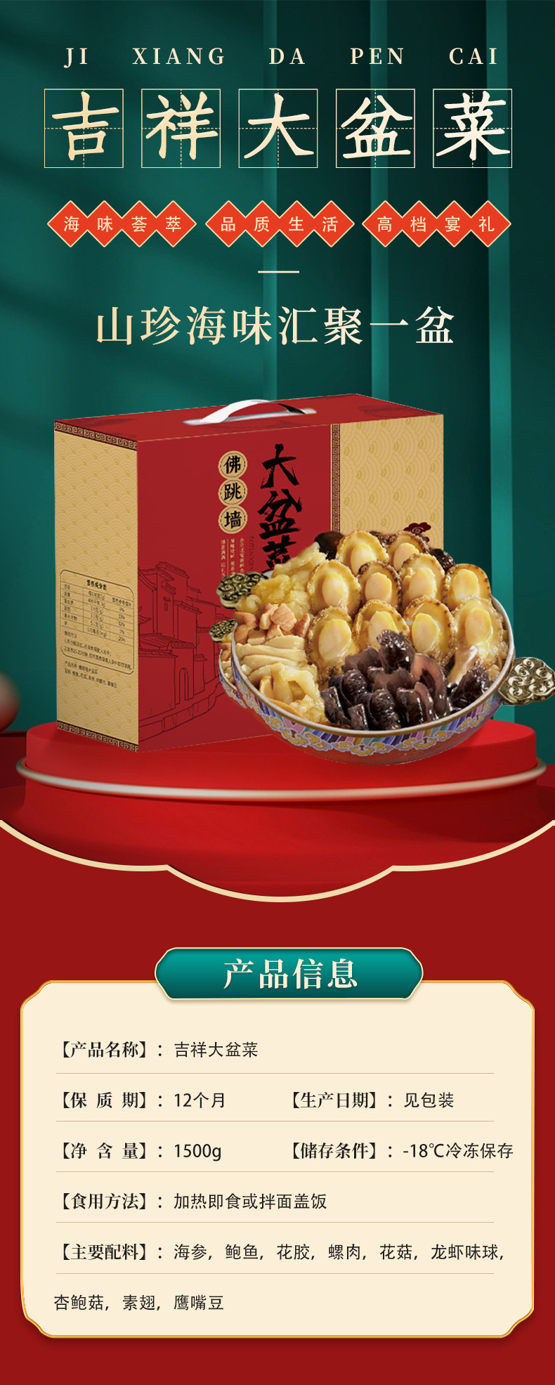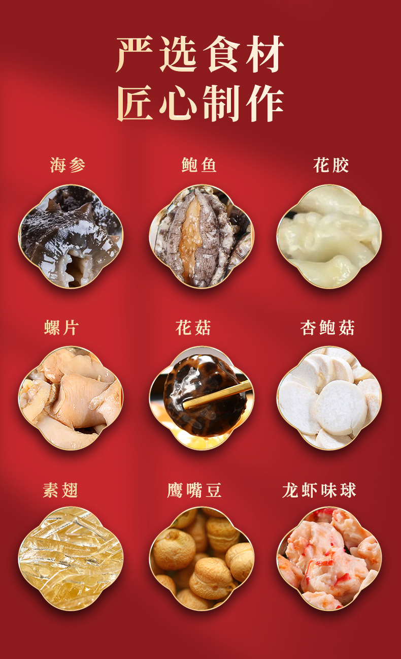 【团圆家宴❗️鲍鱼海参花胶吉祥大盆菜】甄选品质原料制作。海参/鲍鱼/花胶/螺肉/花菇/龙虾味球/杏鲍菇/素翅/鹰嘴豆,吉祥大盆菜鲍鱼海参花胶年饭聚餐半成品加热即食L