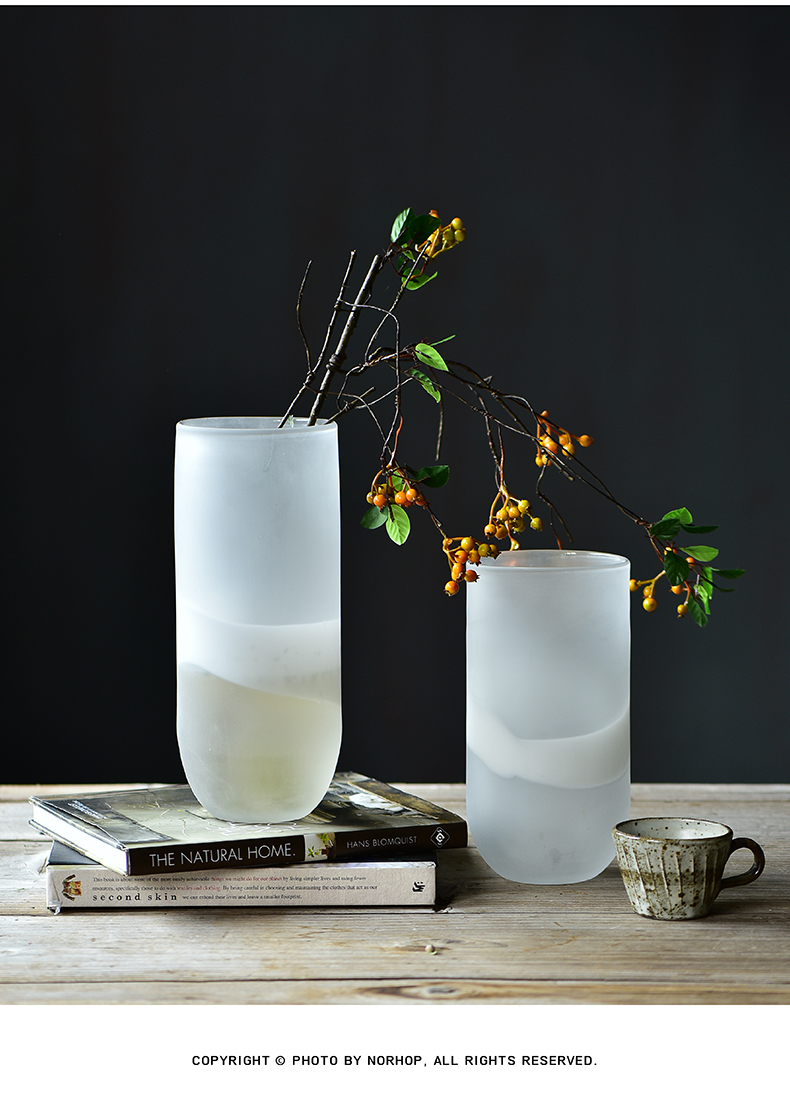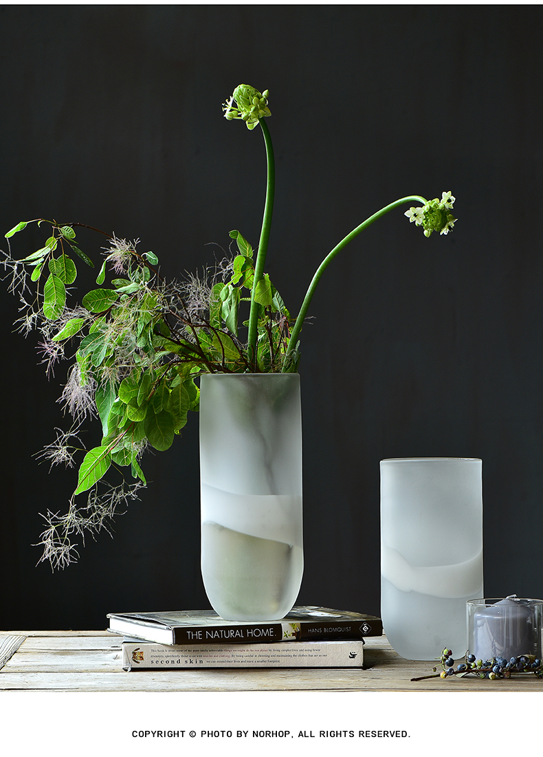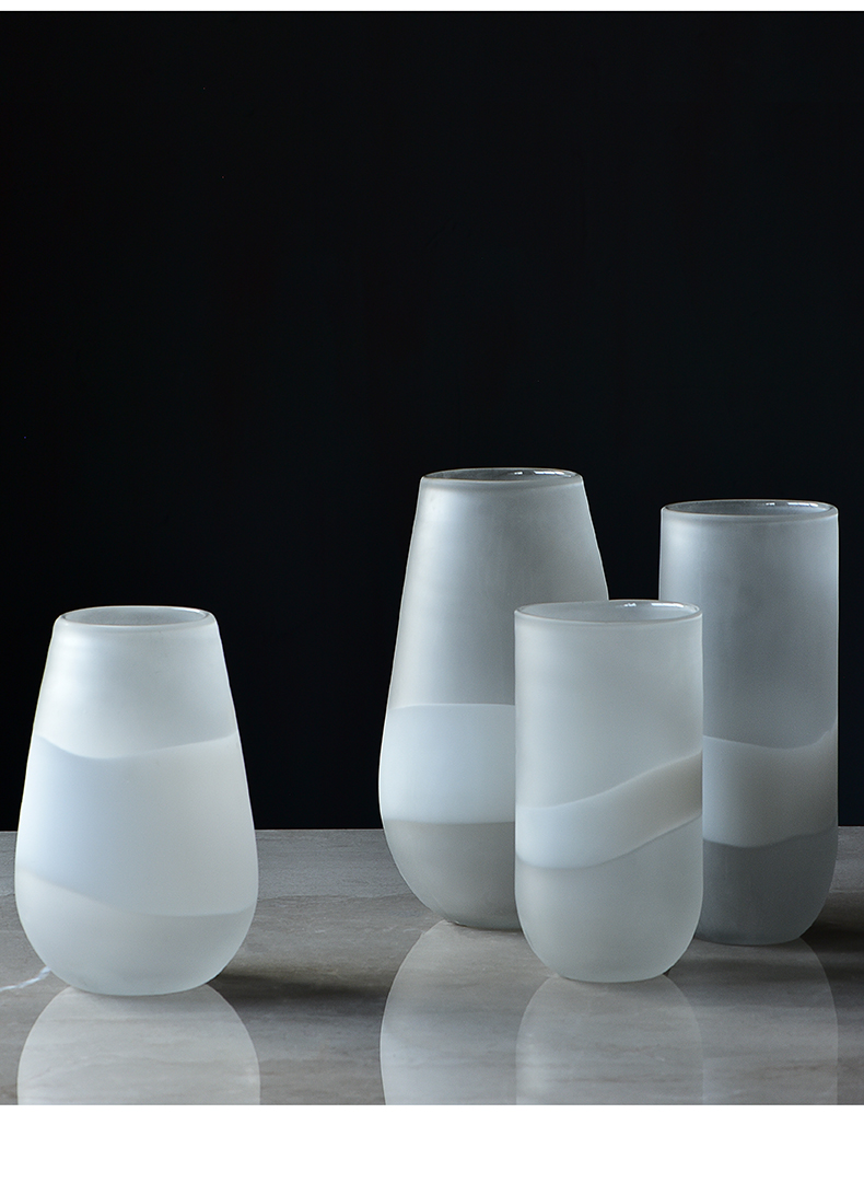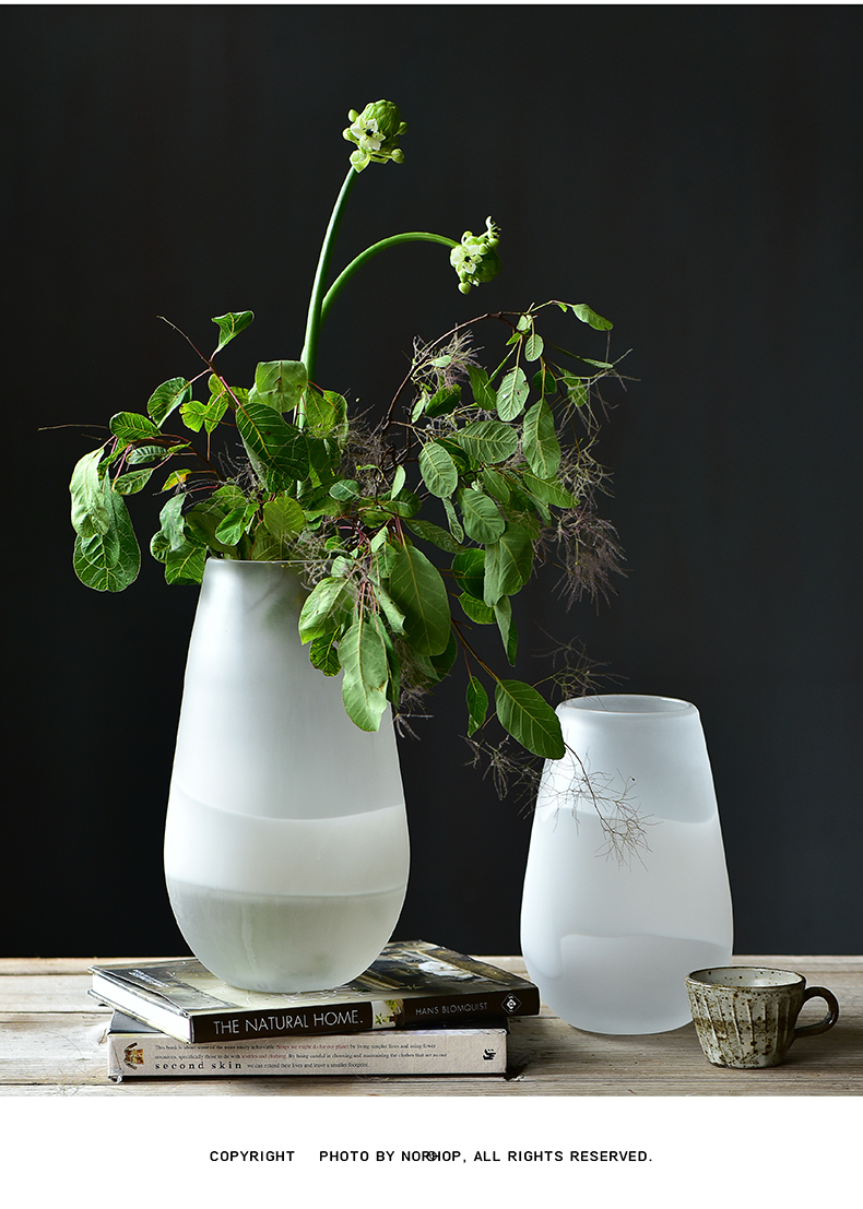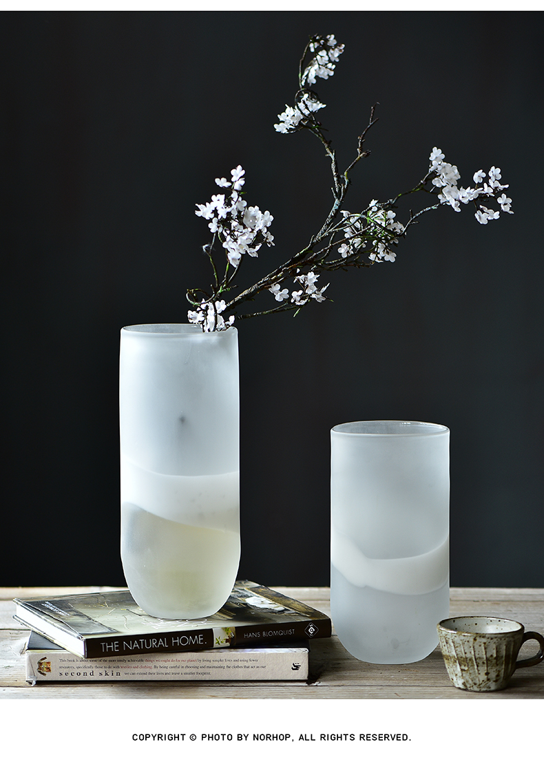 碧轩Bixuan白色磨砂透明玻璃花瓶 餐桌客厅花器陈列家居装饰品摆件