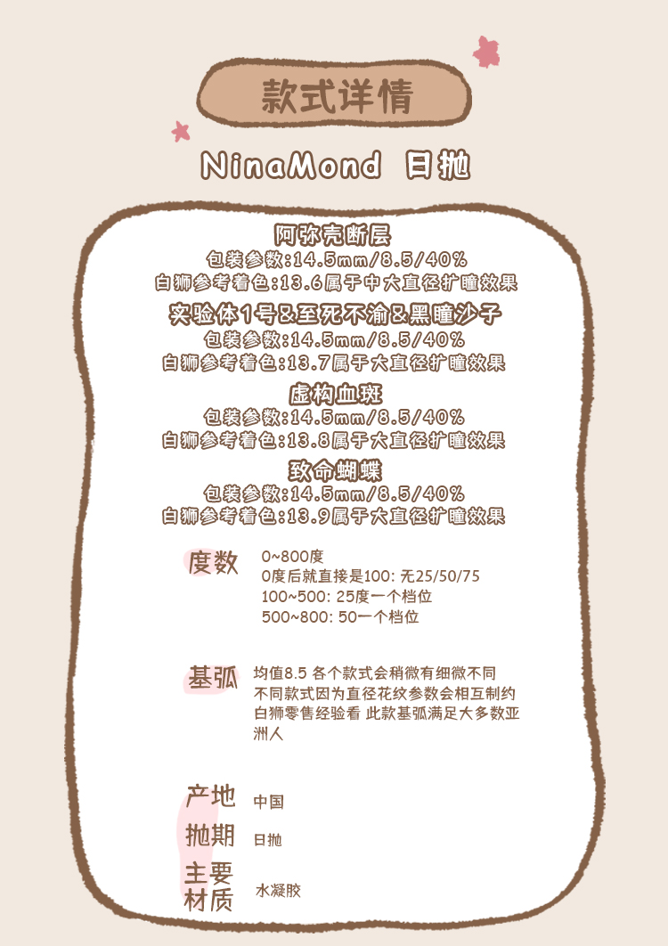 NinaMond日抛XCOS瞳 实验体1号&虚构血斑&黑瞳沙子&阿弥壳断层&至死不渝&致命蝴蝶 日抛