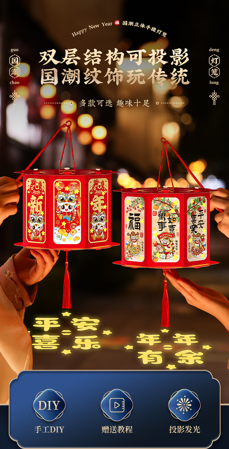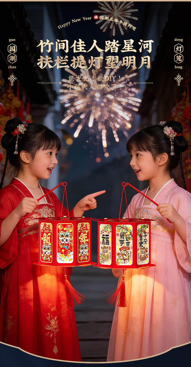 【福利❗️9.9到手🔥新年国潮灯笼】盏盏小灯笼,浓浓氛围过佳节!手工diy2026马年元宵节儿童手提古风花灯过年摆摊小商品