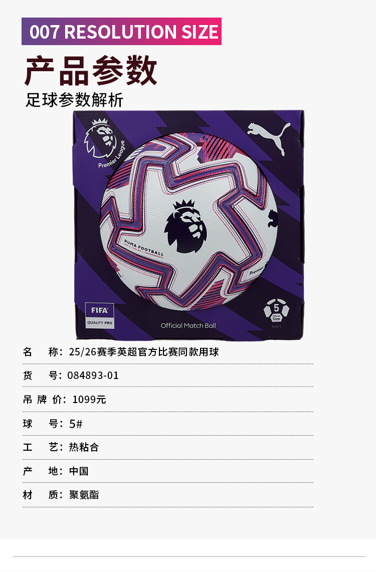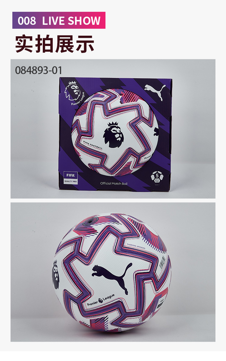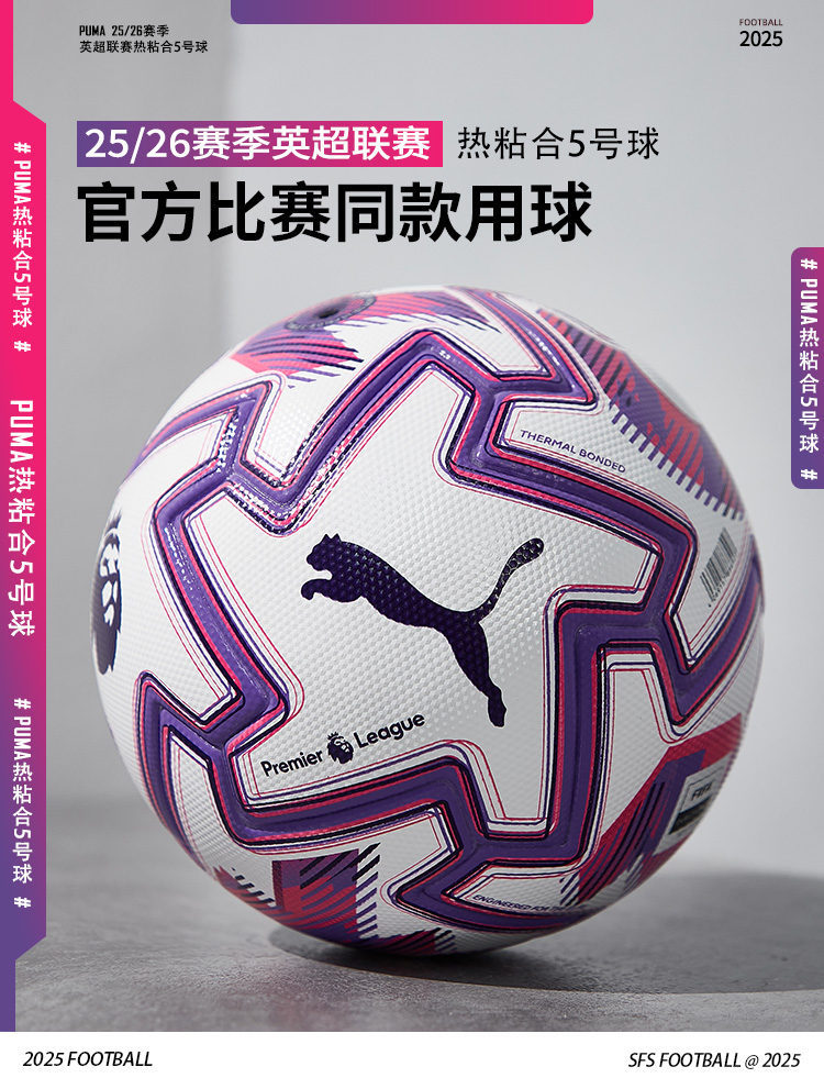 SFS彪马Puma25/26英超高端无缝热粘合5号足球比赛训练球084893-01