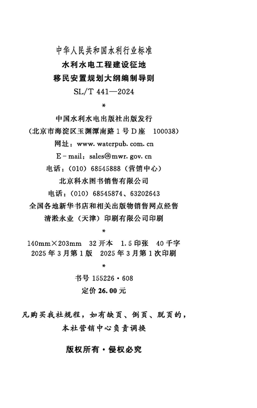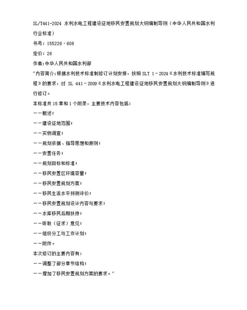 SL/T441-2024水利水电工程建设征地移民安置规划大纲编制导则(中华人民共和国水利行业标准)