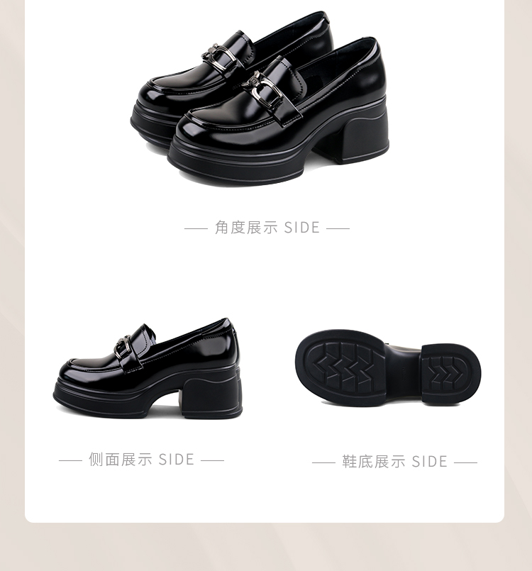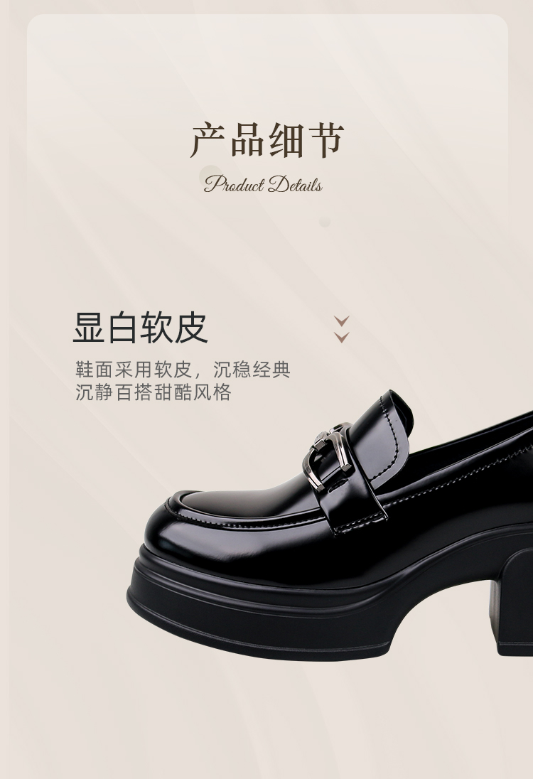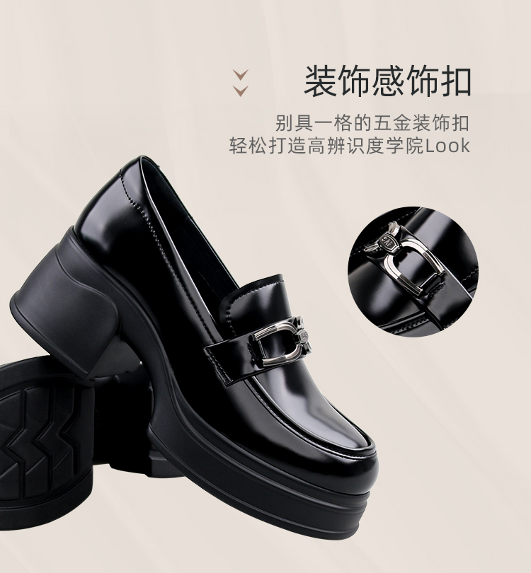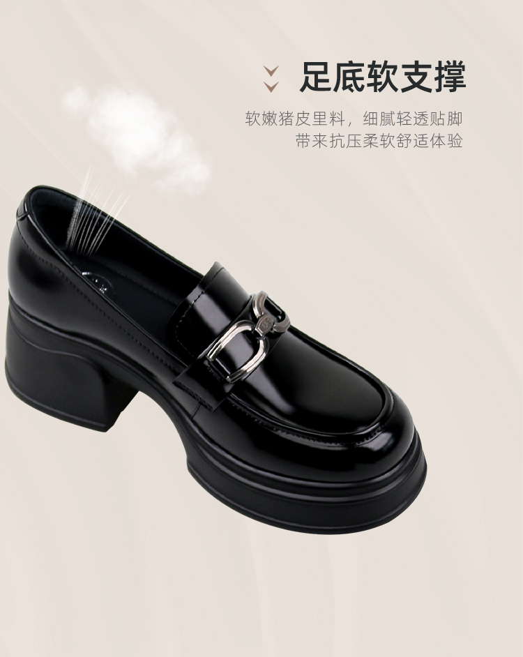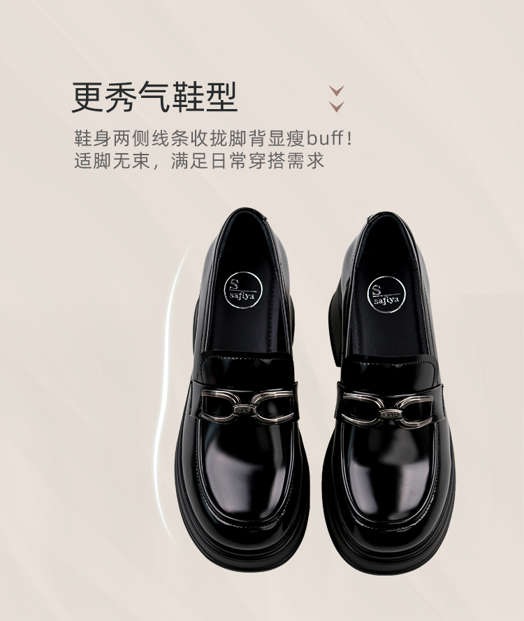 Safiya/索菲娅2025学院风方头粗跟轻便百搭小个子增高乐福鞋 SFD1112160