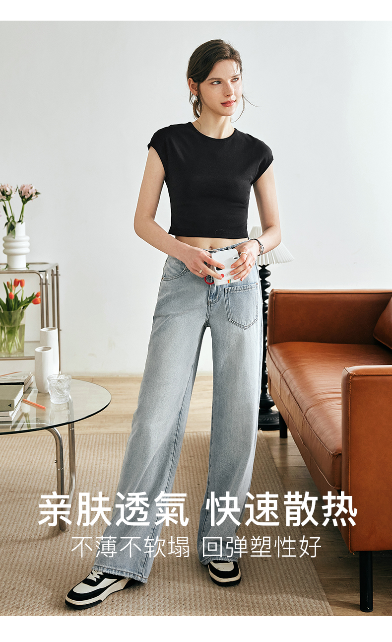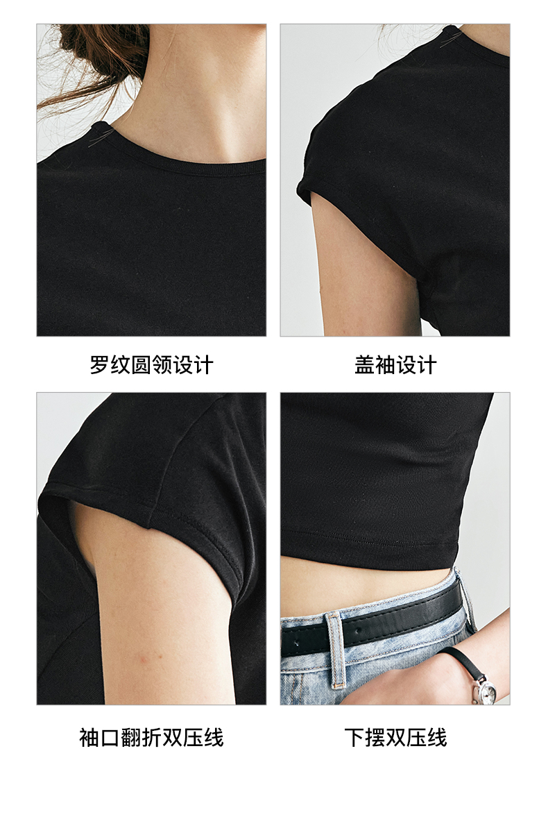 OLrain欧芮儿法式黑色短袖T恤女夏季2023年新款修身弹力短款上衣