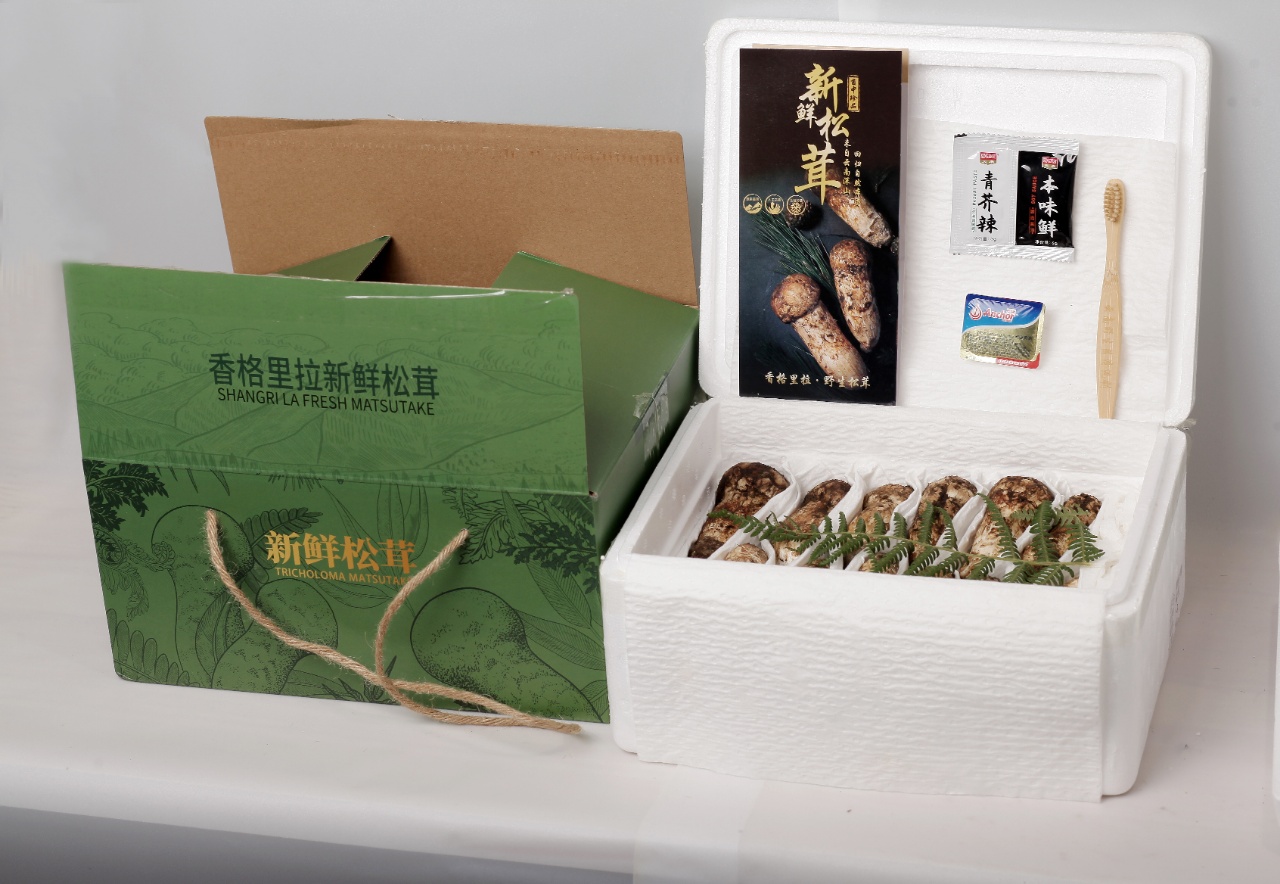 ①每一盒香格里拉鲜松茸,都按照出口标准生产,每一步都经过严格细致的把控。