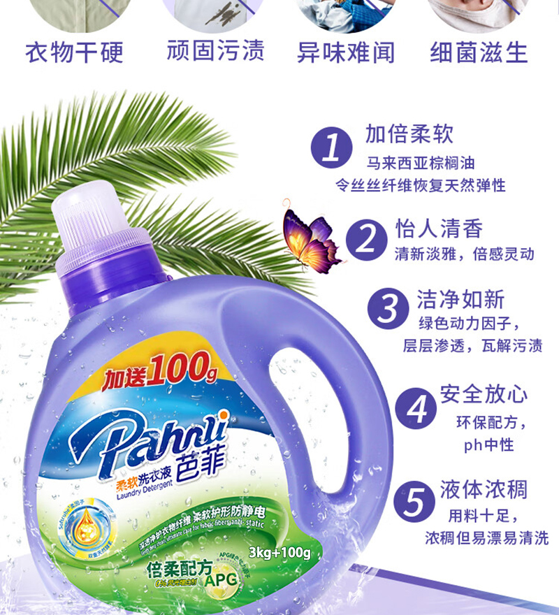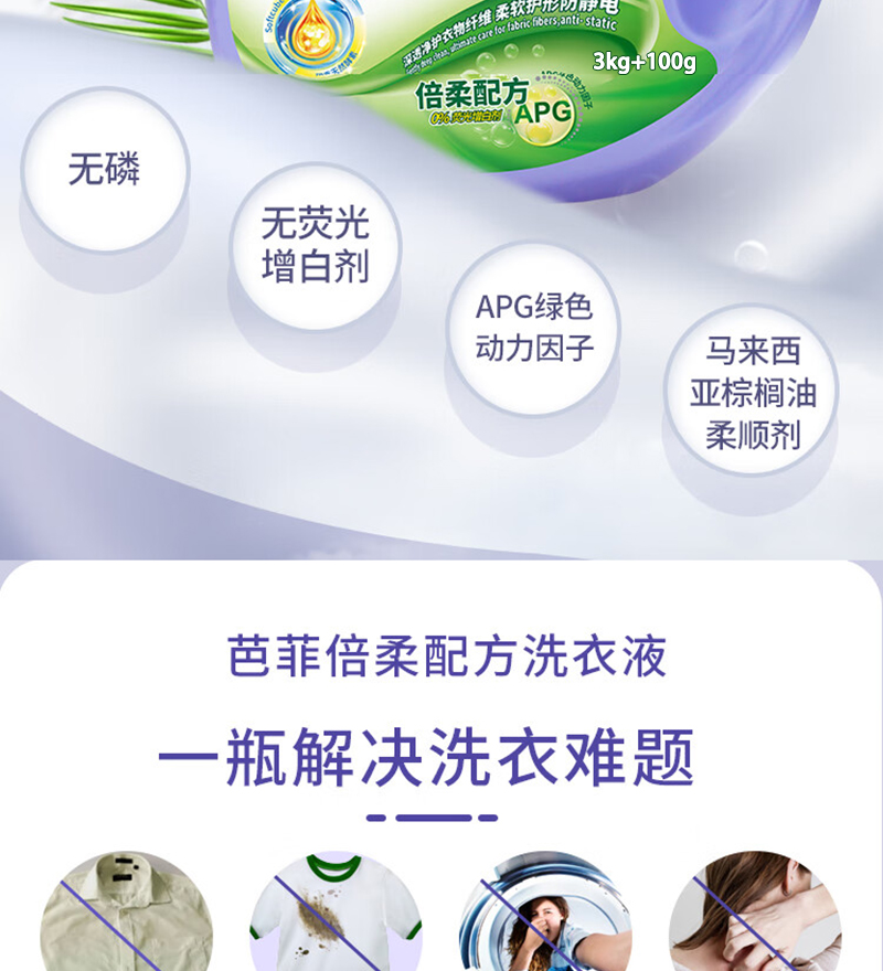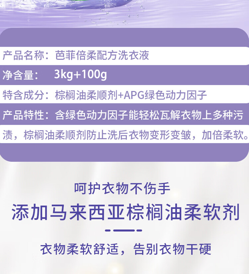 芭菲倍柔配方柔软洗衣液(3KG+100G)*2瓶