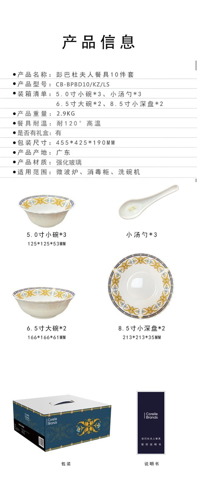 【分仓直发包邮】康宁冰萃玲珑彭巴杜夫人餐具10件套CB-BPBD10/KZ/LS