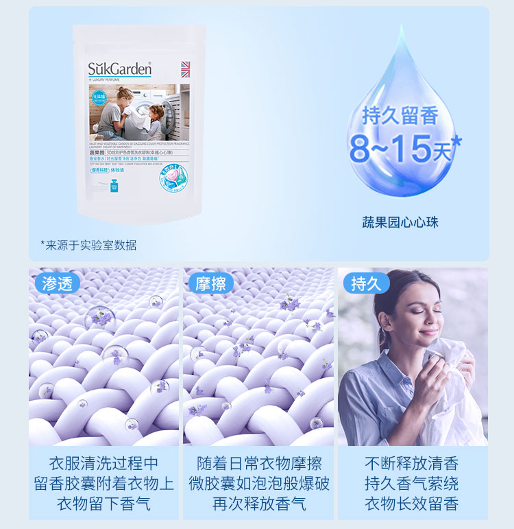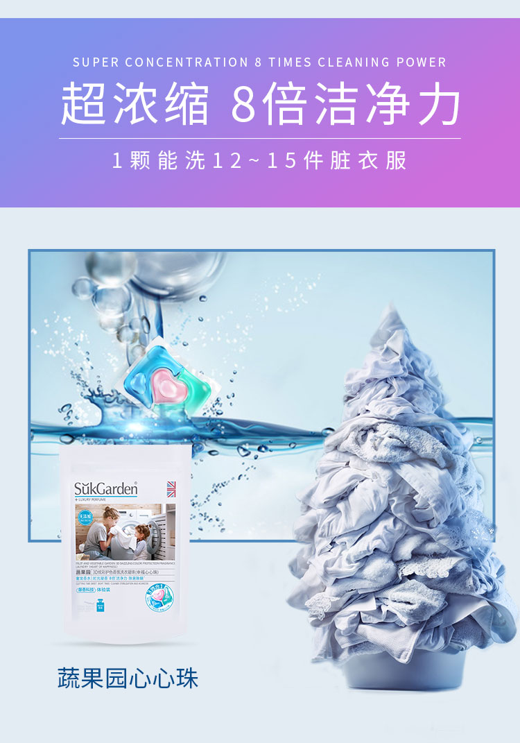 SukGarden蔬果园3D炫彩护色香氛除螨抑菌洗衣凝珠(浓缩强效型) 10g*4颗*3袋