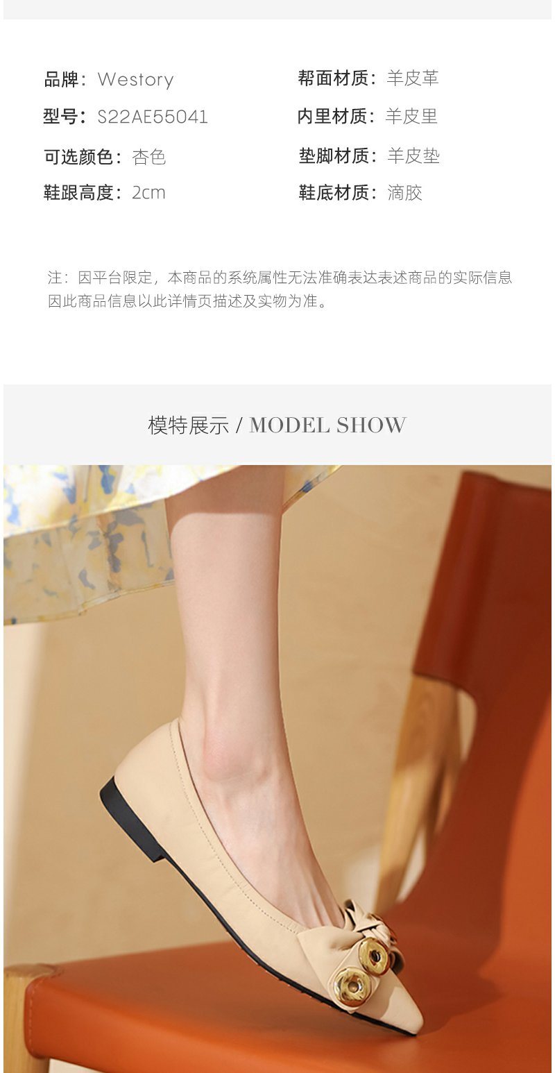 westory2024年春季新款小低跟尖头蝴蝶结优雅气质女鞋S24AE56671