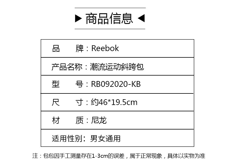【Reebok 锐步潮流胸包】锐步胸包 单肩斜挎 随心搭配 百搭时尚单品