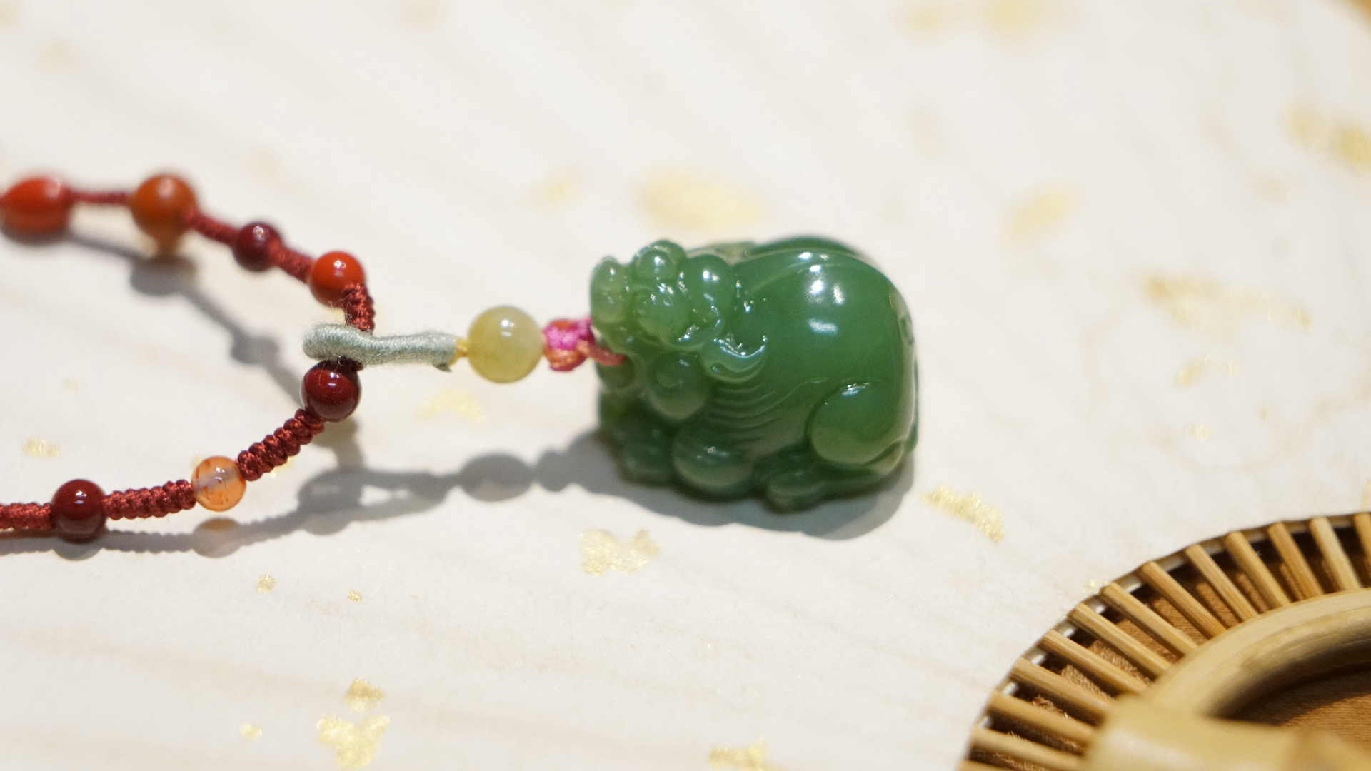 粉绿精品碧玉貔貅,这质量,嘎嘎滴!这身材!够饱满!年货品质就是出色!hoho!侧挂豆子是黄翡翠! 细节满满!