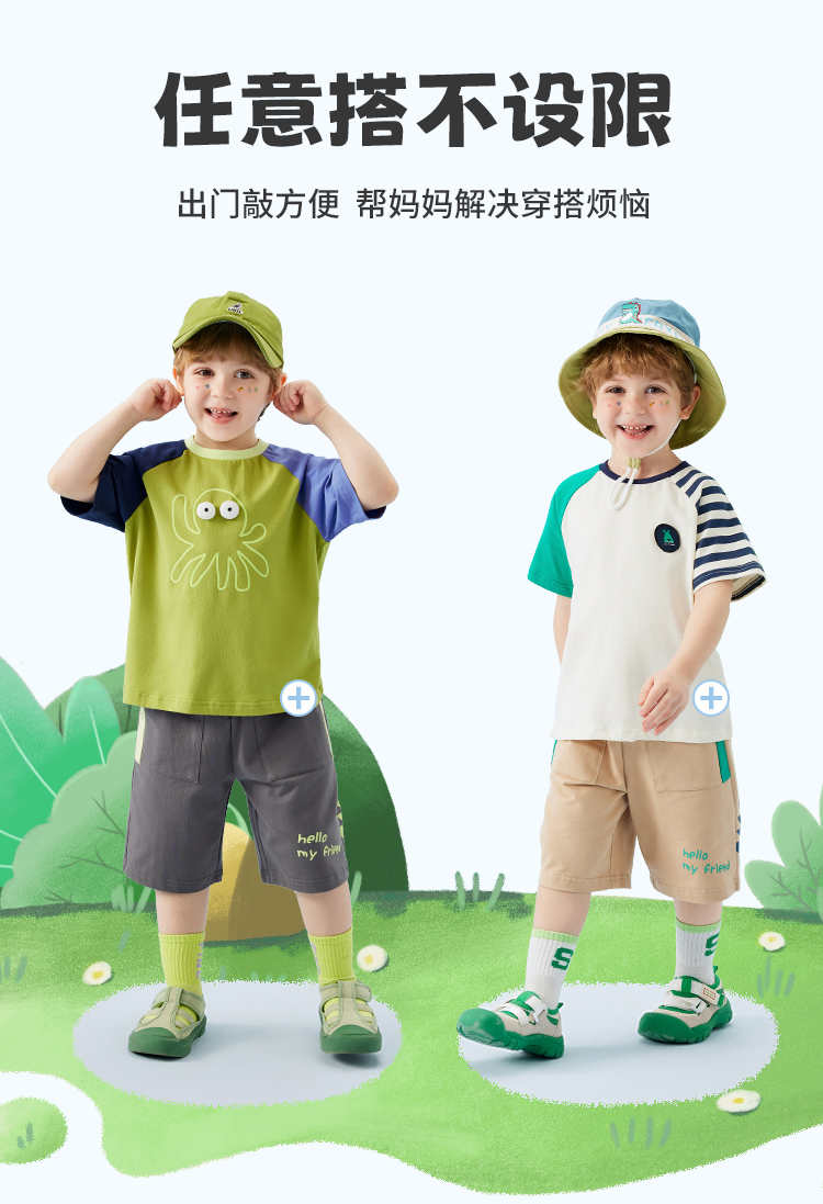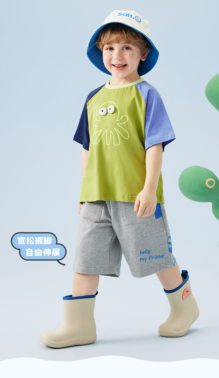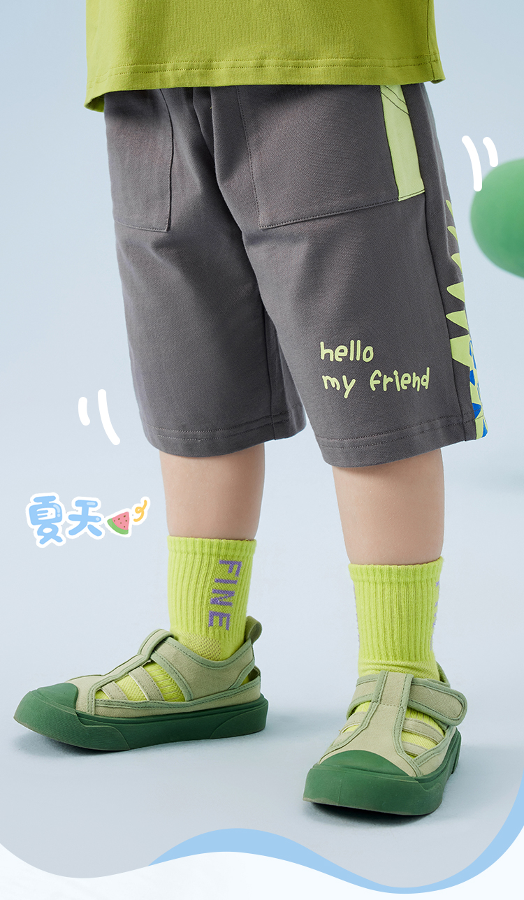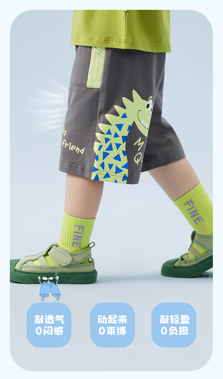 【萌趣恐龙】【80-120】【MQDmini】男童夏季针织短裤休闲五分裤(95%棉 5%氨纶 )