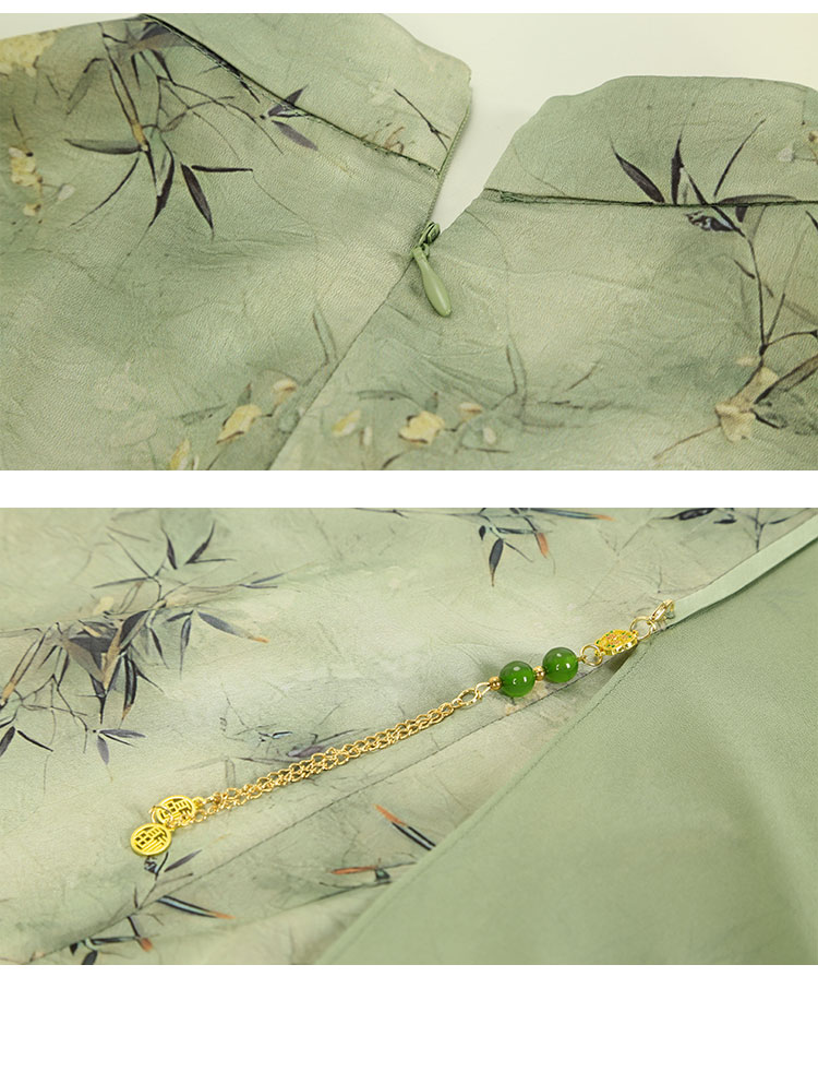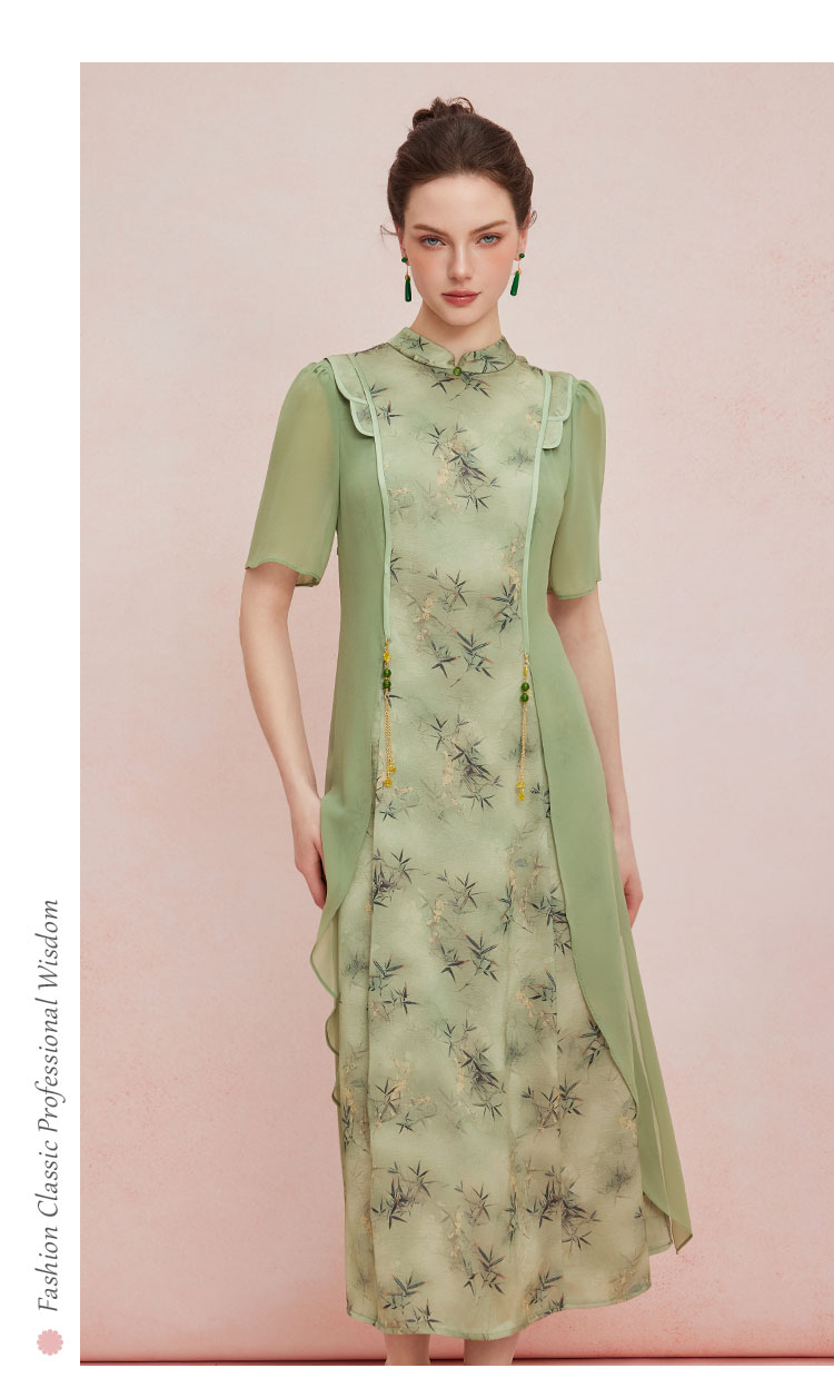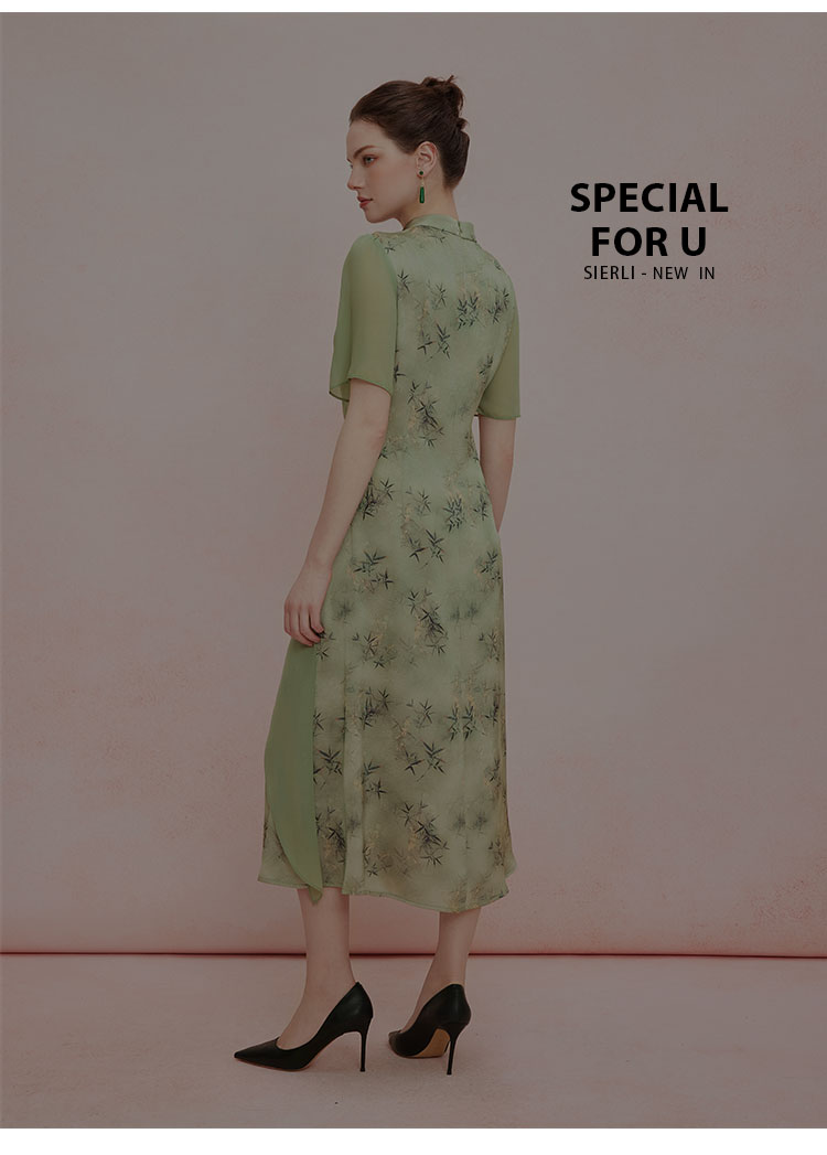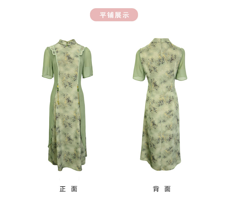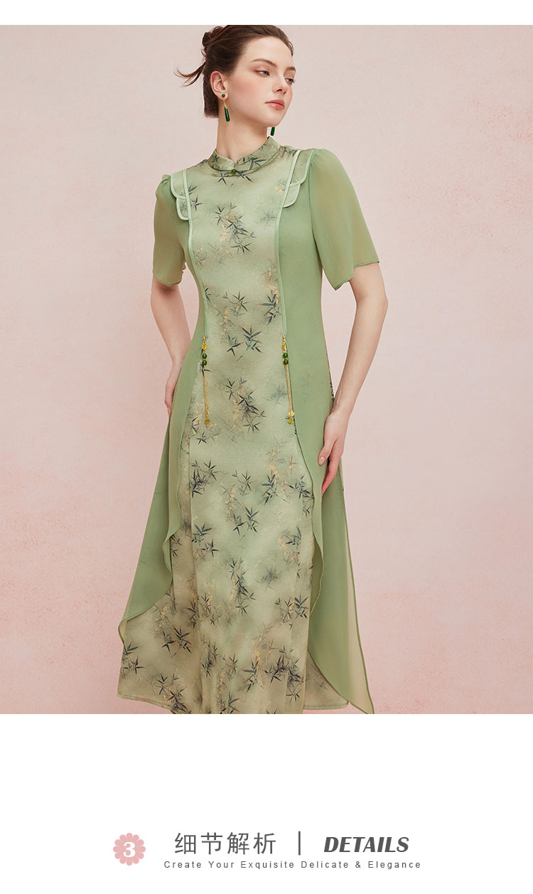 QF894斯尔丽25新款新国风改良旗袍水墨国画清雅气质精致配饰散摆连衣裙