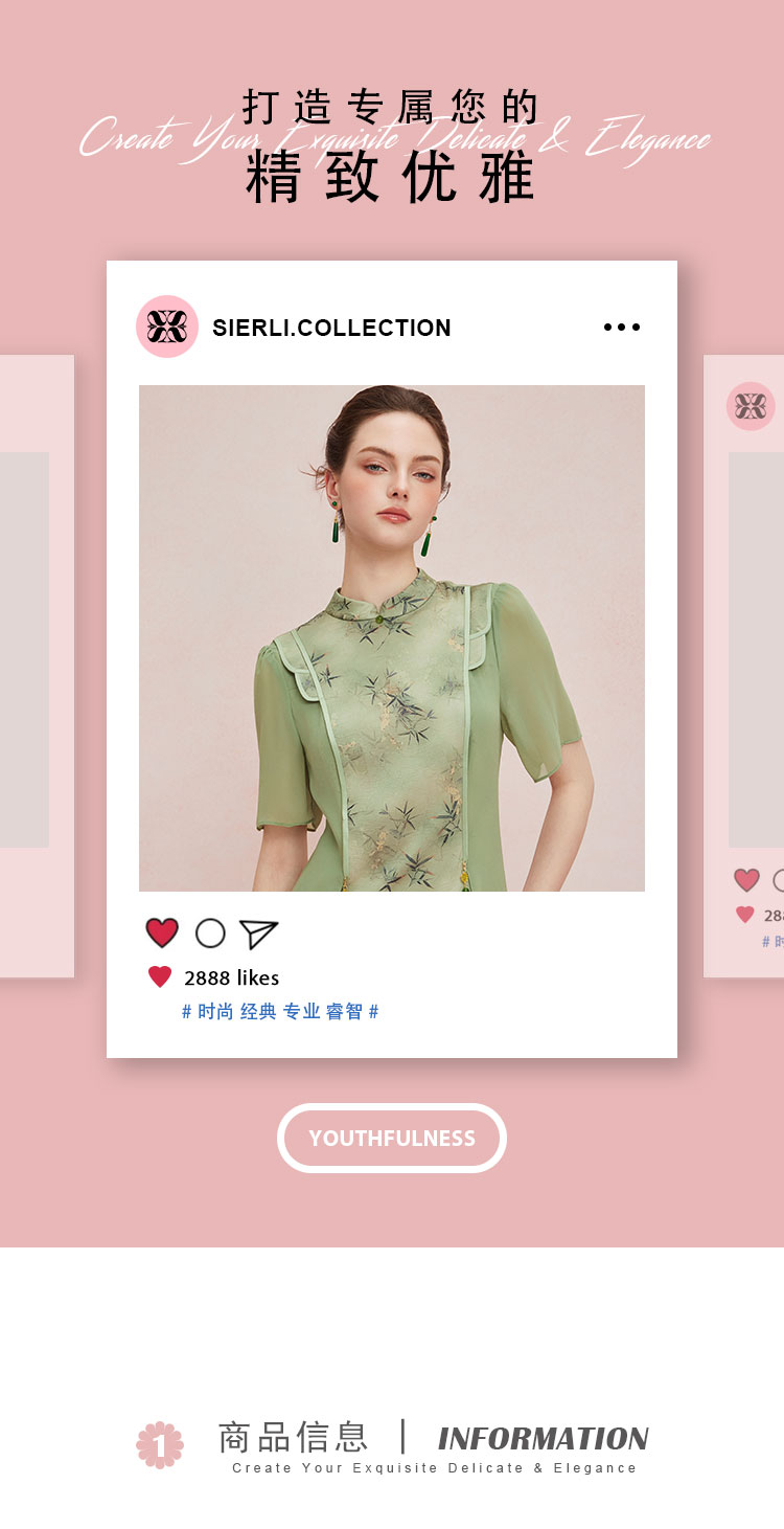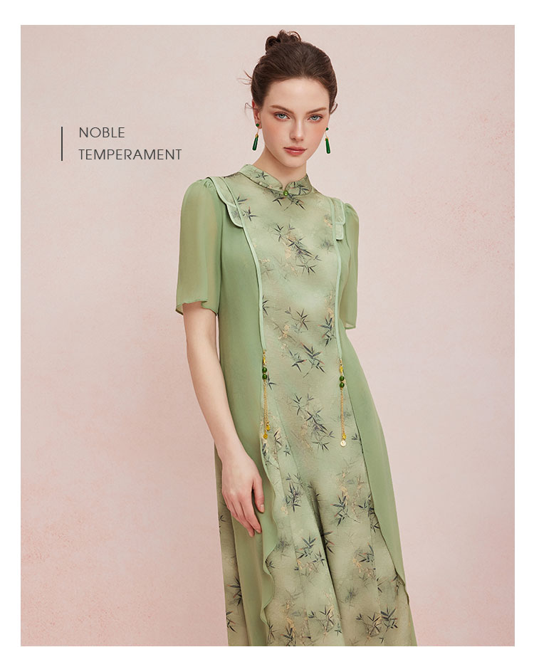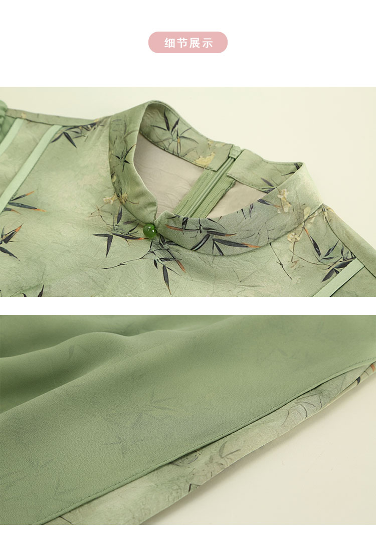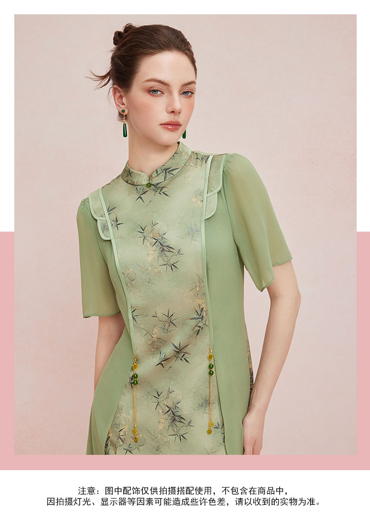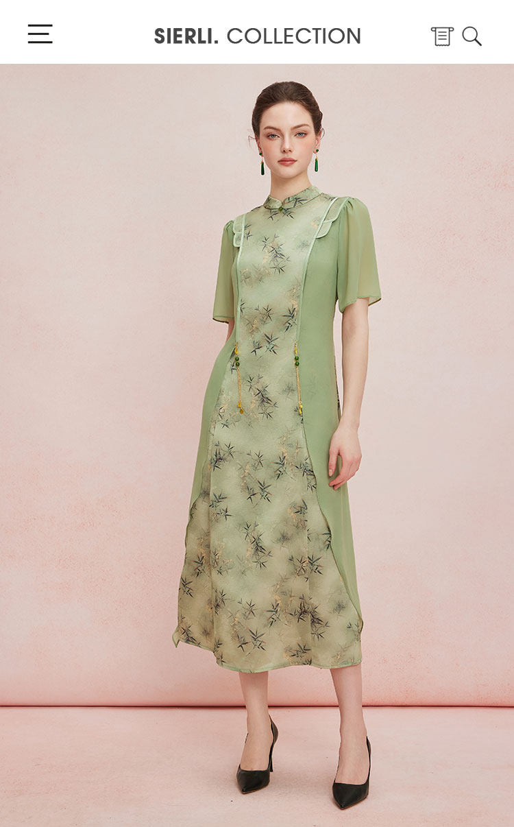 QF894斯尔丽25新款新国风改良旗袍水墨国画清雅气质精致配饰散摆连衣裙