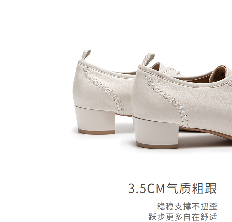 千百度粗高跟乐福鞋女春季通勤浅口小皮鞋羊皮正装豆豆鞋A24132626