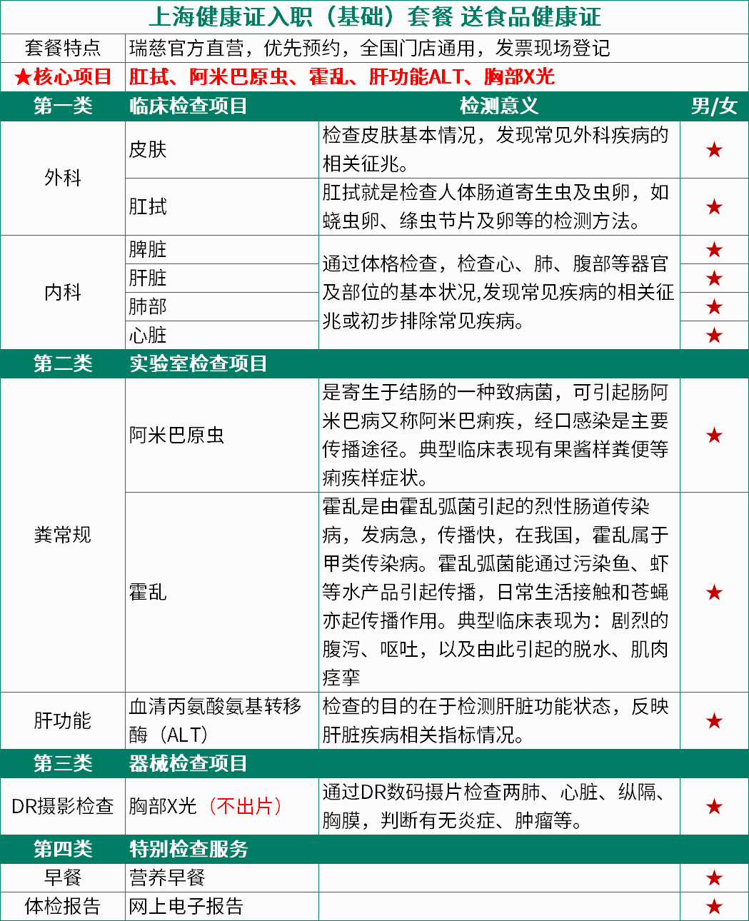 上海健康证入职(基础)体检套餐 送食品健康证