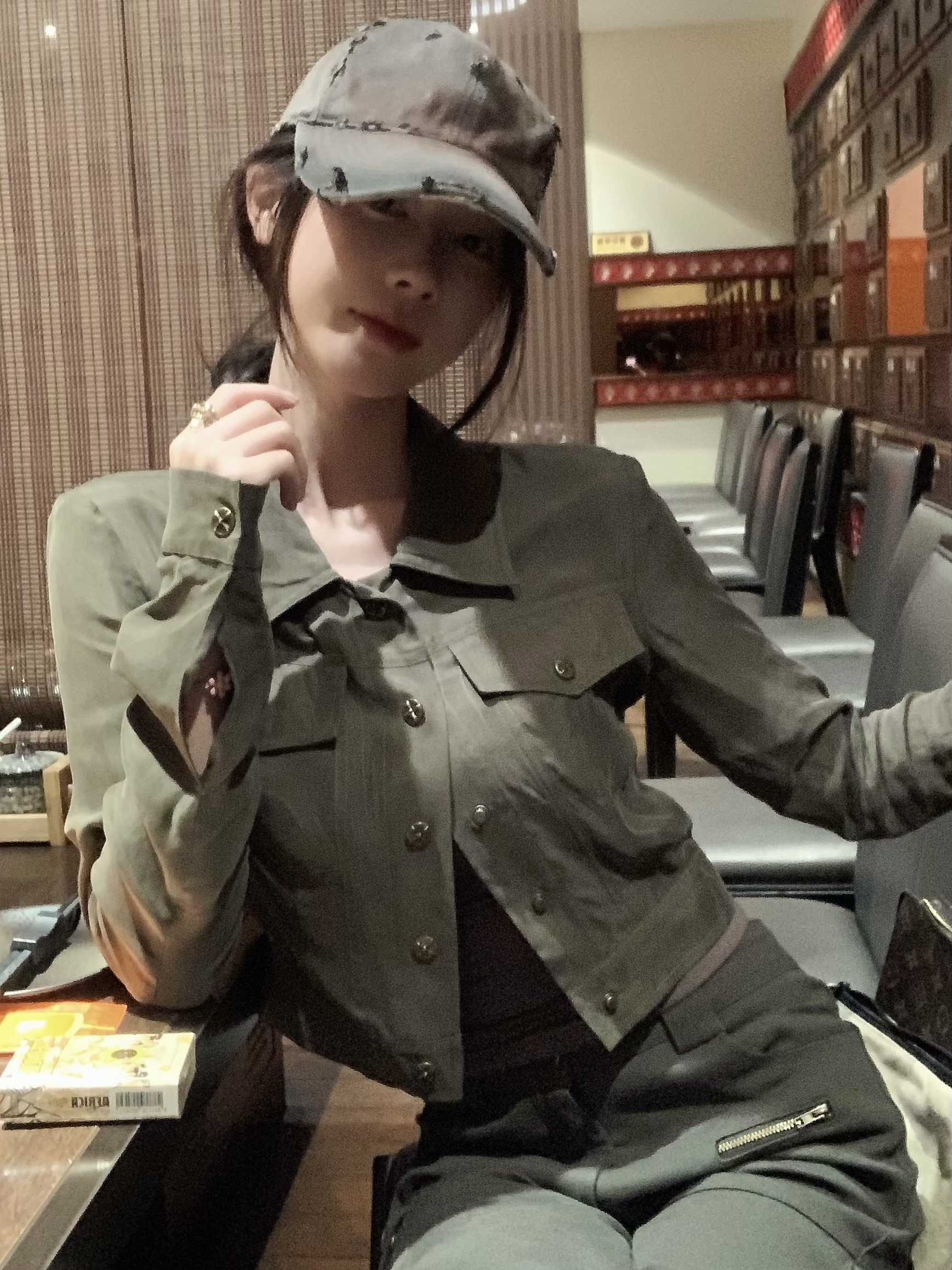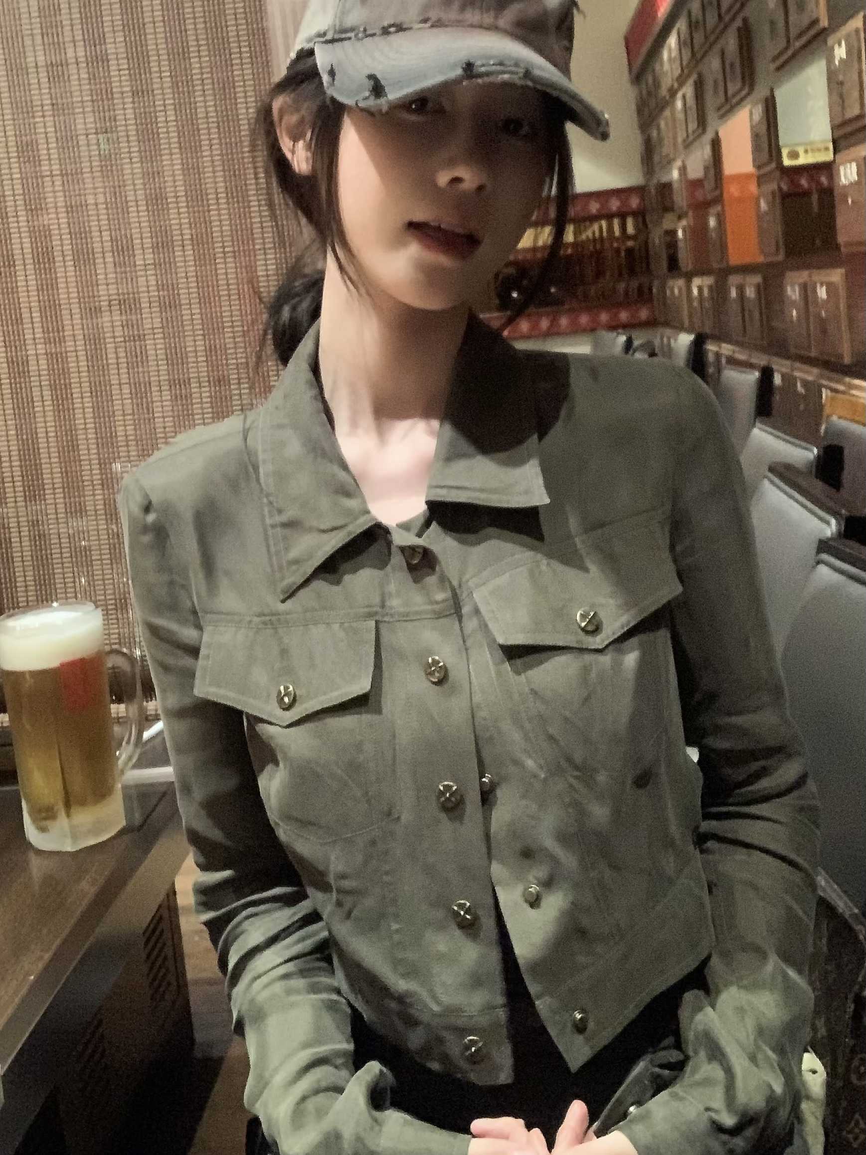 现货 复古胶片 做旧甜酷感 短款夹克外套