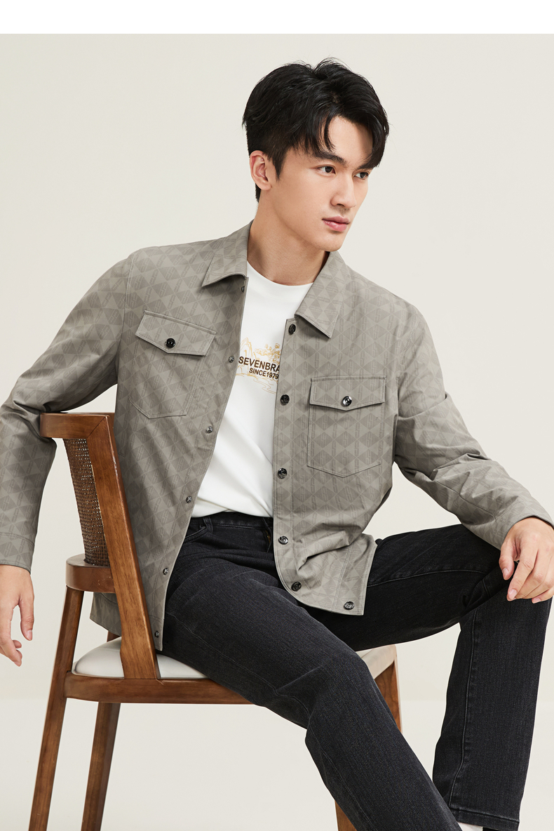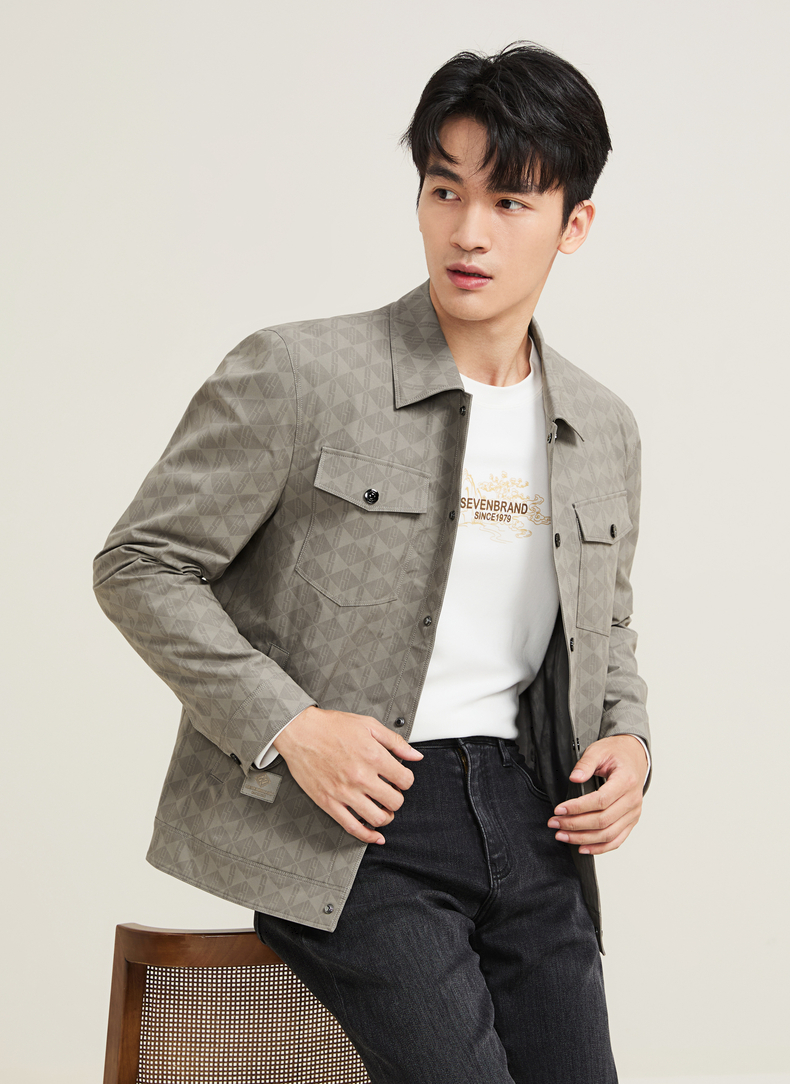 【工装满印茄克】柒牌男装翻领夹克秋季男士休闲易打理茄克衫外套129K70240