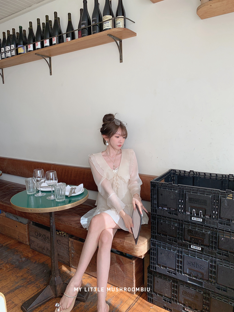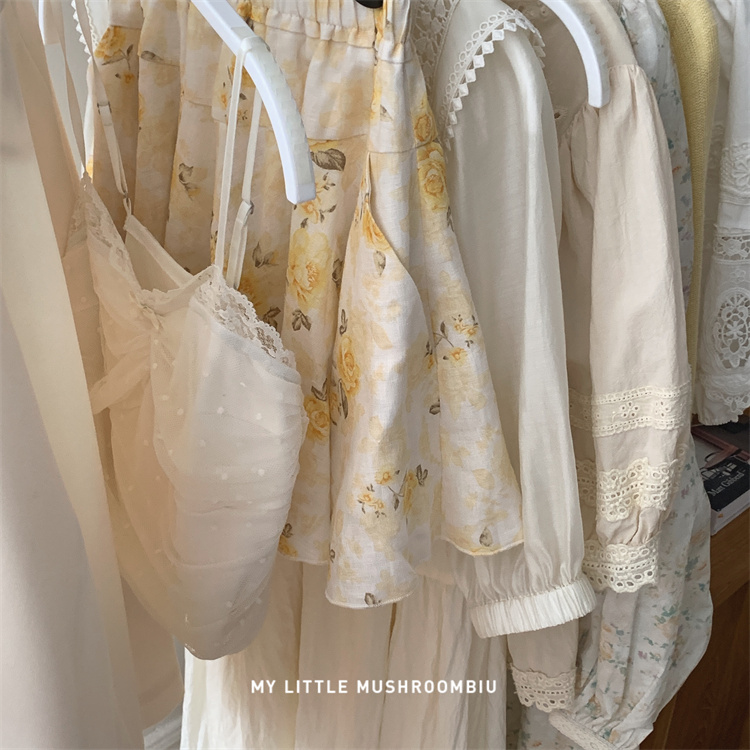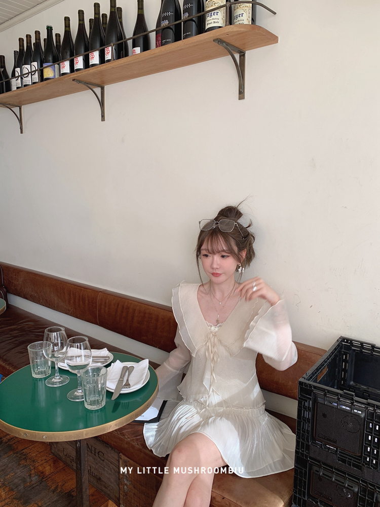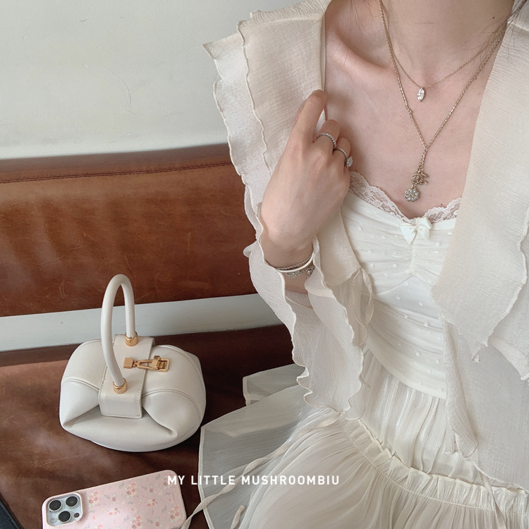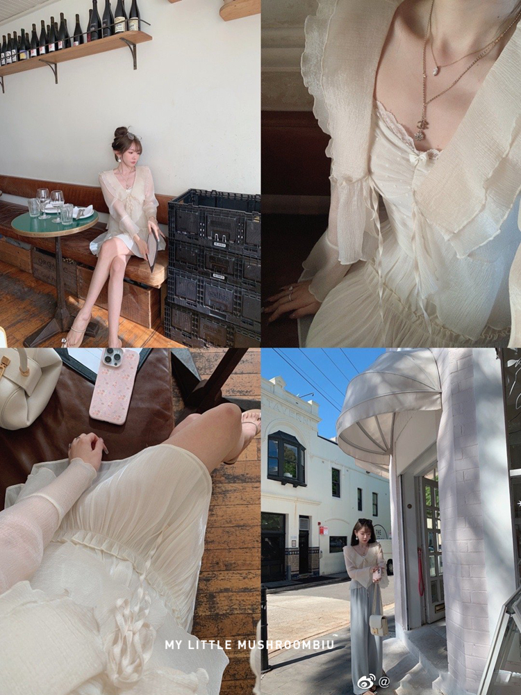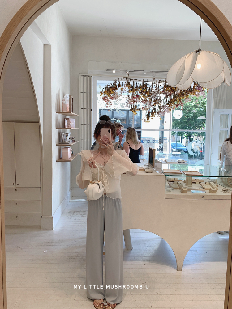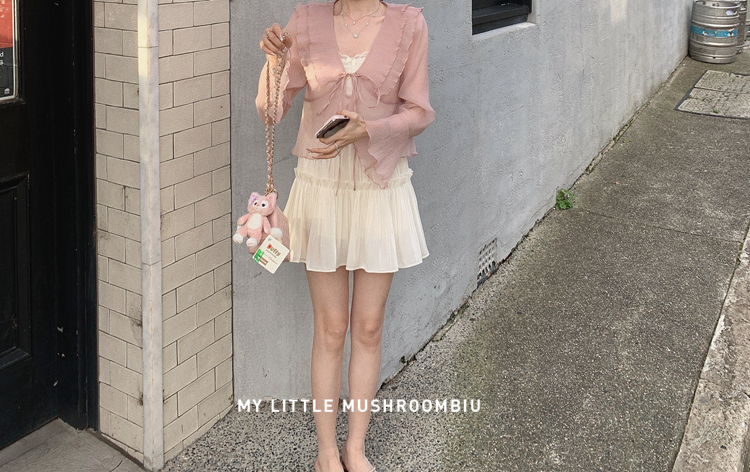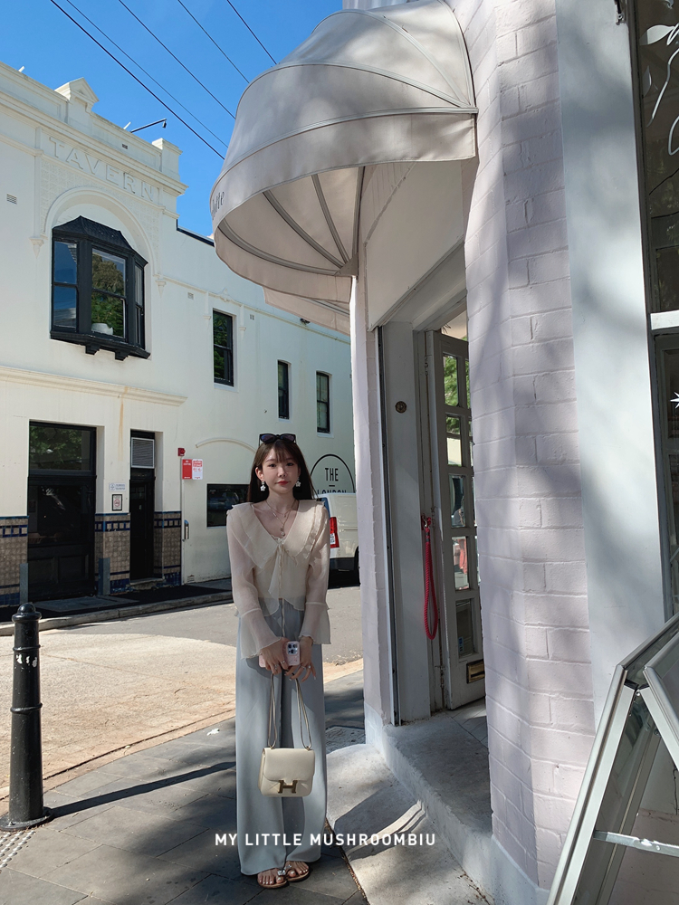 金蘑菇菇 doucuer月光白茶 / 温柔荷叶领喇叭袖仙气上衣防晒小衫