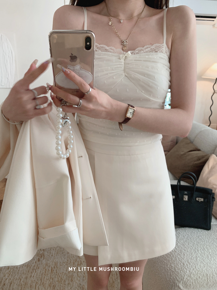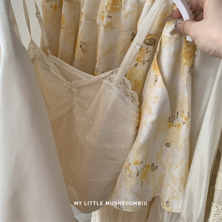 | 吊带网纱:95%锦纶5%氨纶 里布:40%粘纤37%锦纶13%氨纶10%莱赛尔 衬衫面料:56%锦纶44%聚酯纤维 半裙面料:100%聚酯纤维 |