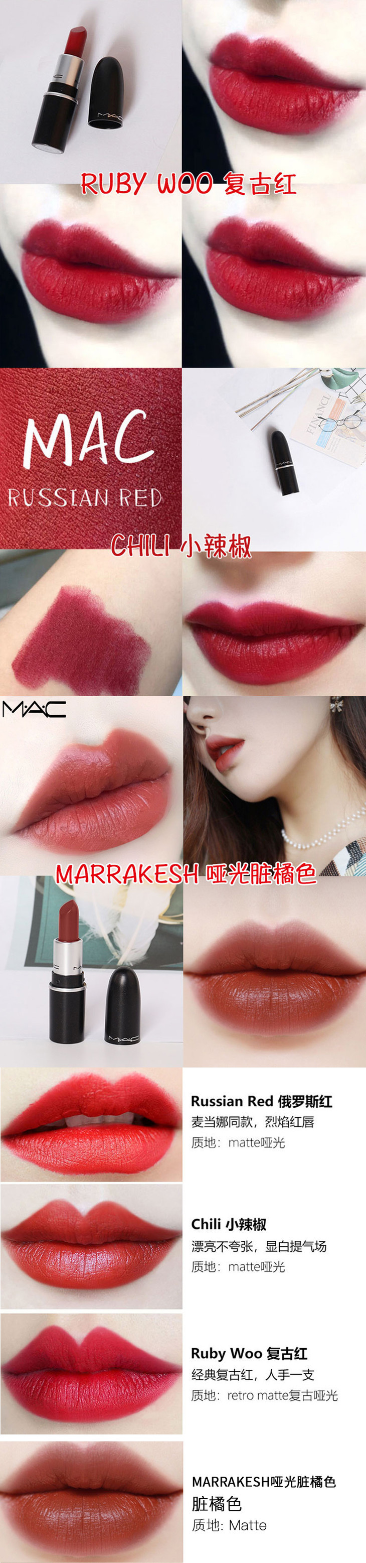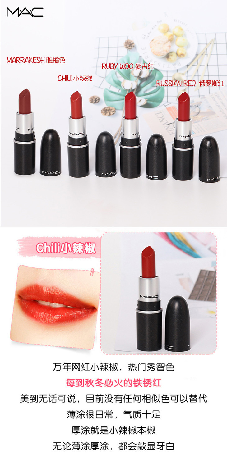 【授权商品】MAC魅可mini迷你口红 1.8g中样唇膏 小辣椒 chili等